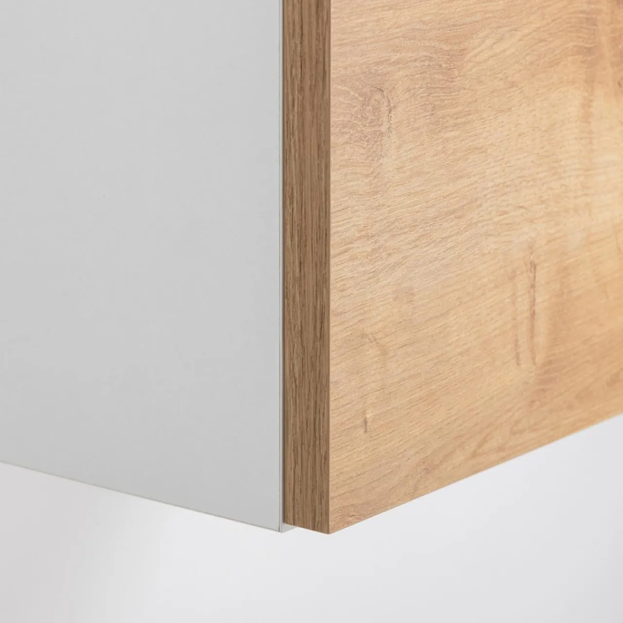 Dekor w kolorze drewna dębowego sprawia, że front świetnie wygląda w połączeniu zarówno z jasnymi, jak i ciemnymi z ciemnymi barwami oraz odcieniami bieli i czerni. Daje to duże możliwości pod kątem zbudowania własnego, niepowtarzalnego stylu oraz w ciekawy sposób urozmaica wnętrze zwłaszcza w połączeniu z frontami szafek oraz innymi elementami kuchennej zabudowy.