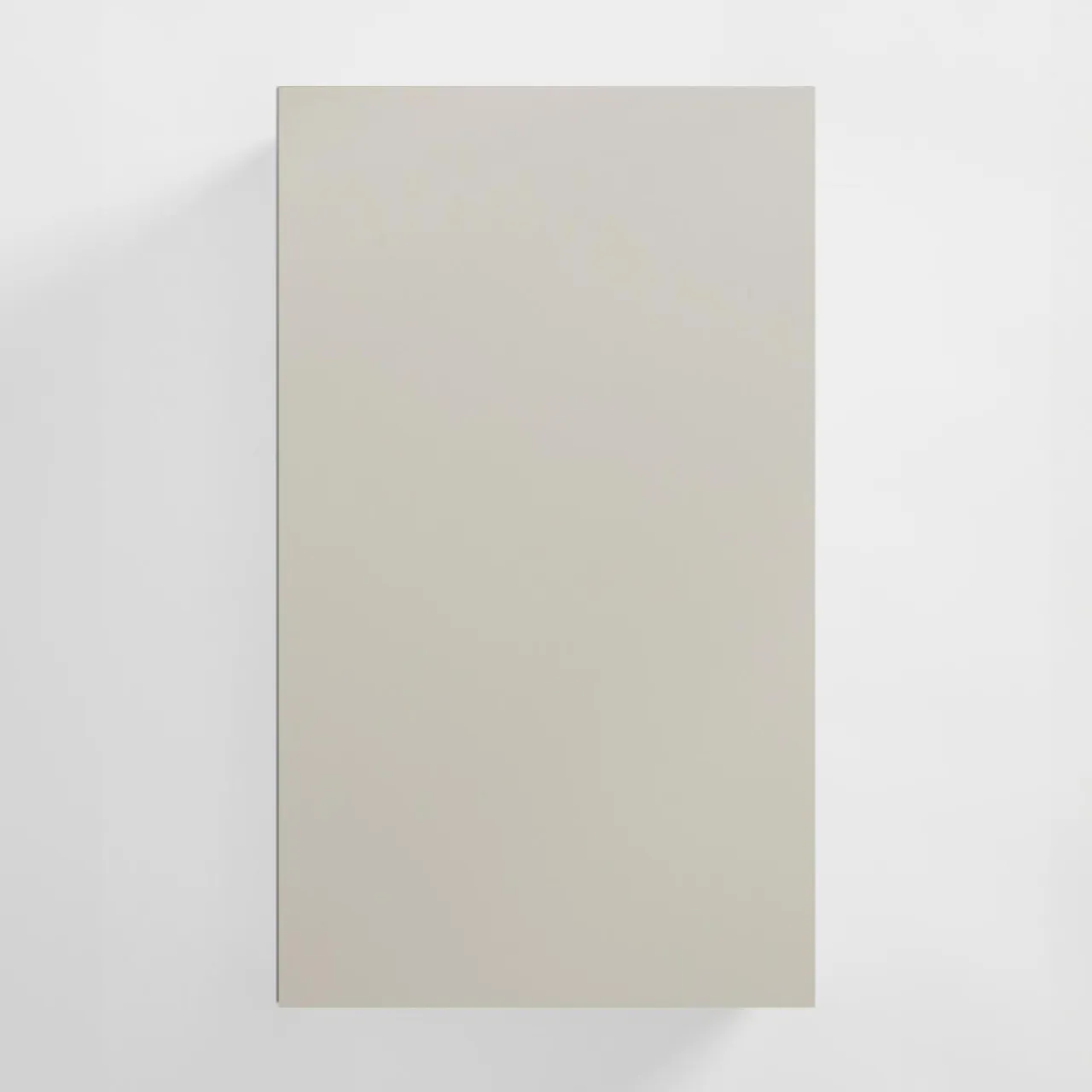 - Front wykonany z płyty MDF o grubości 1,8 cm, pokryty matową folią PET w kolorze szary taupe.