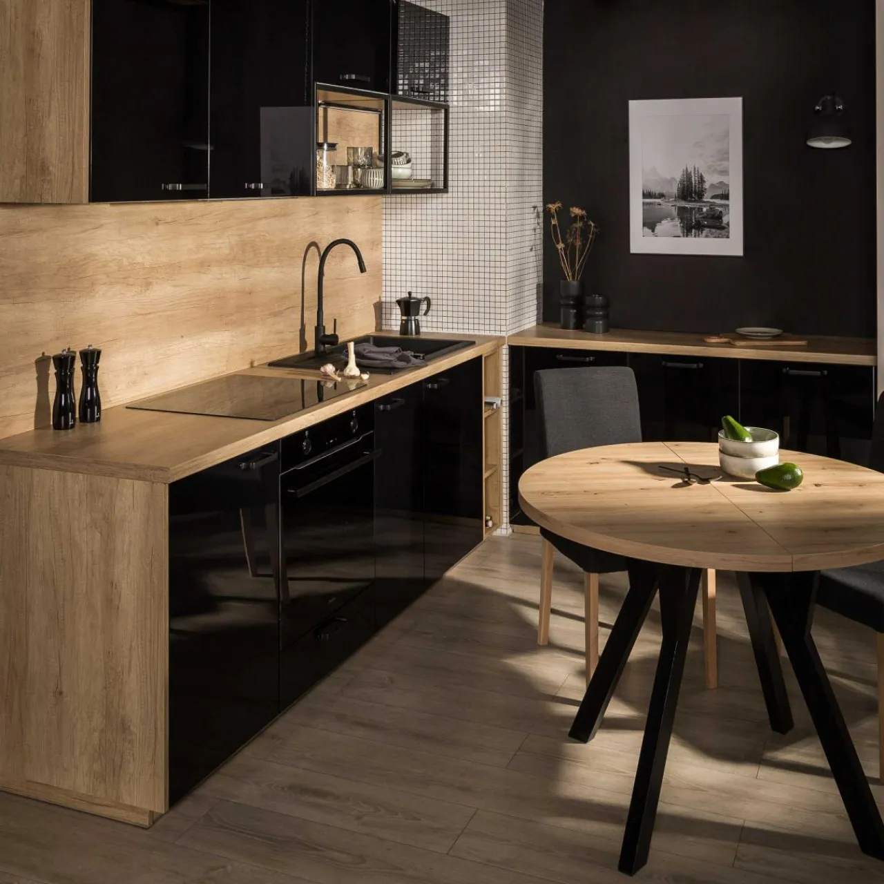 - Wykończenie w wysokim połysku rozświetla kuchnię nadając wnętrzu głębi i elegancji.