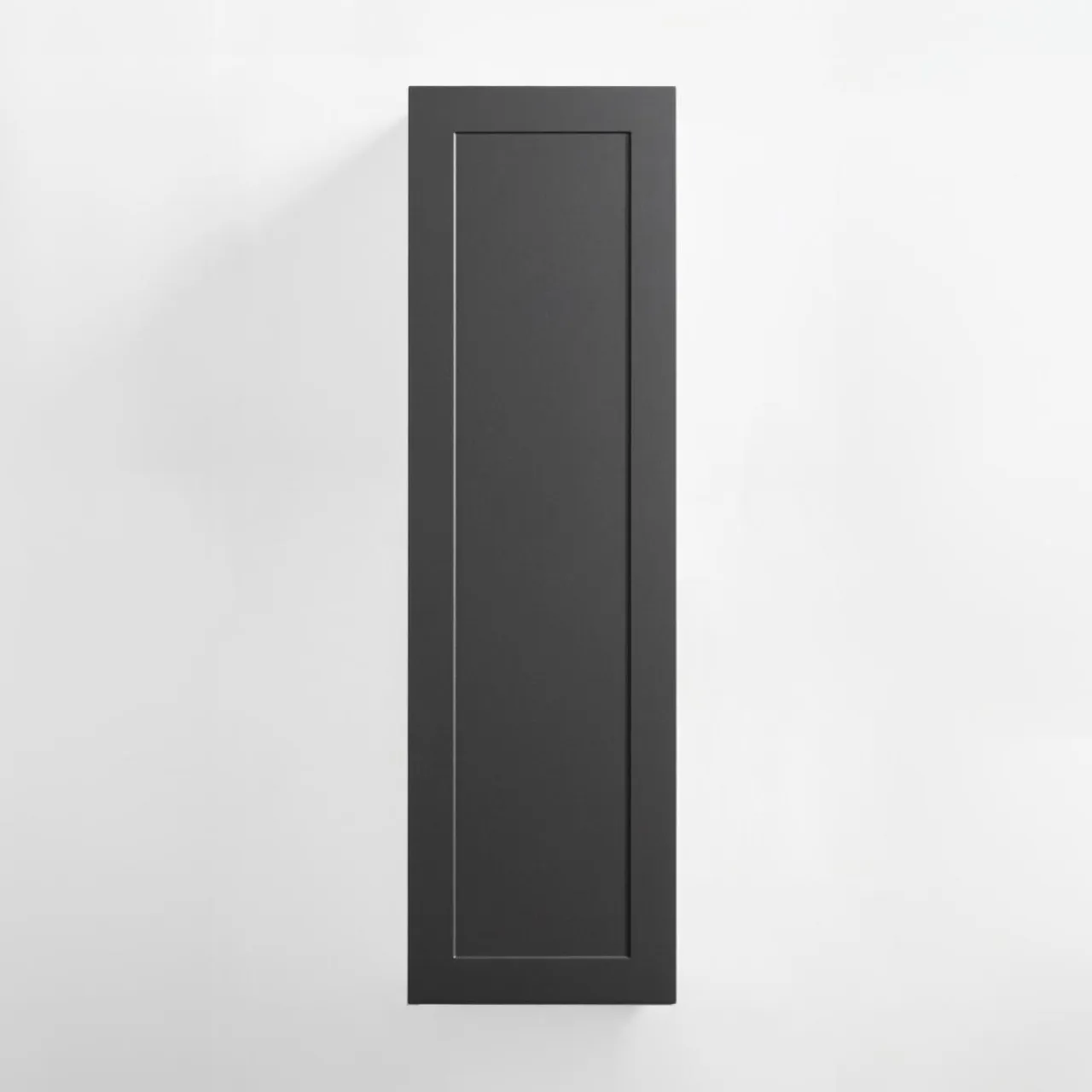 Front został wykończony folią PVC w grafitowym kolorze. Doskonale sprawdza się w połączeniu z wnętrzami utrzymanymi w odcieniach bieli oraz blatami w ciemnej i jasnej kolorystyce.