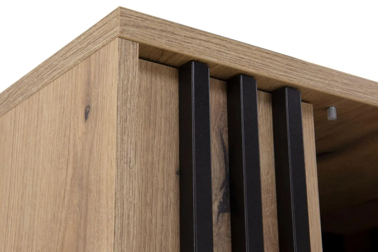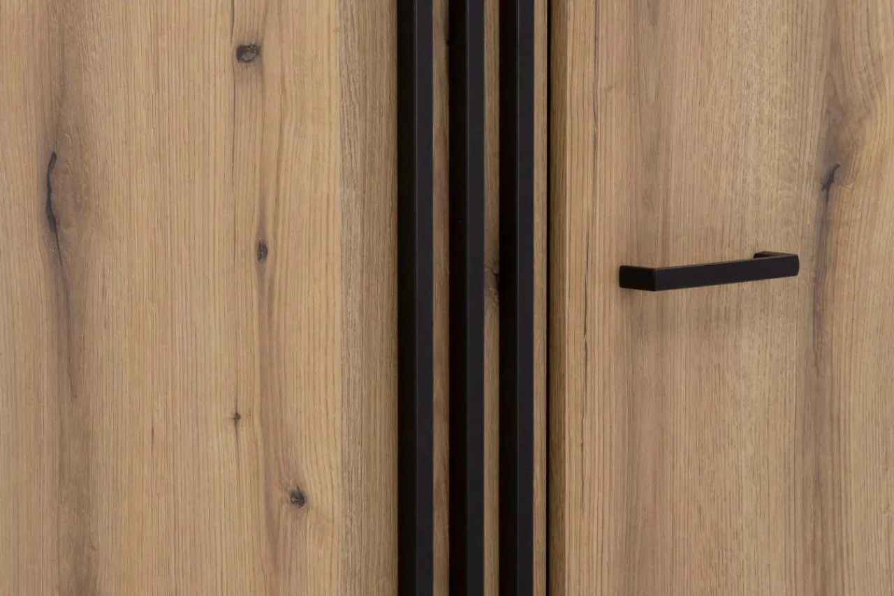 Kolekcja NOEL to połączenie laminatu imitującego drewno z czarnymi nóżkami i lamelami na froncie. To wszystko sprawia, że mebel odnajdzie się we wnętrzach urządzonych w stylu nowoczesnym i japandi.
