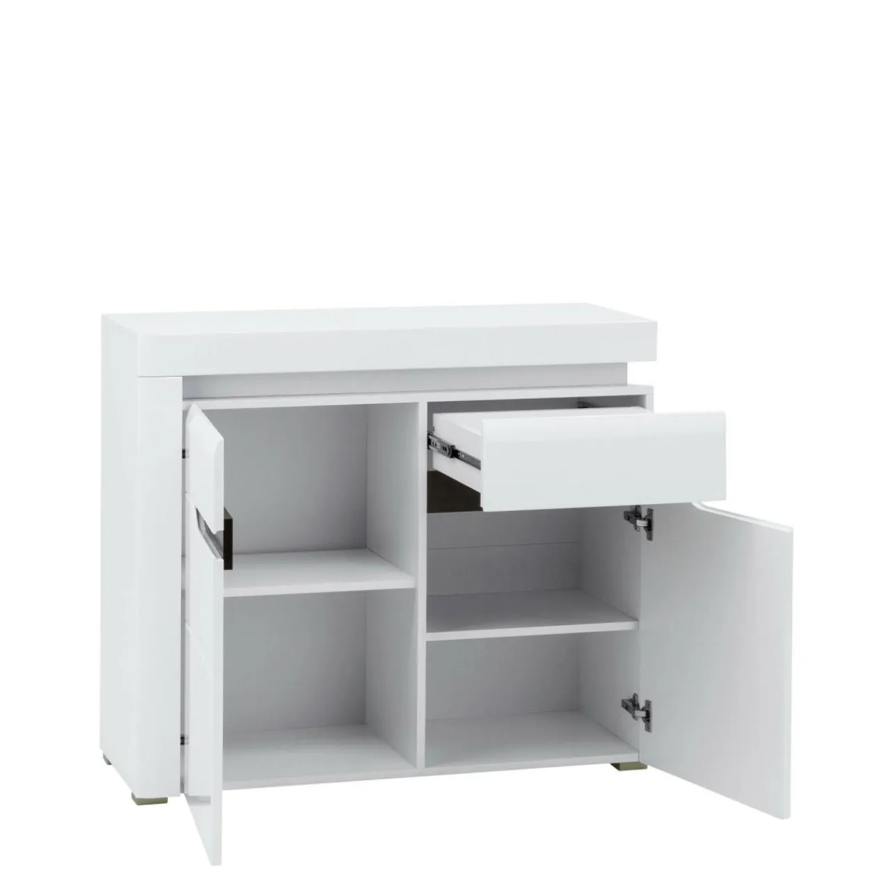 W drzwiach zamontowano zawiasy z systemem cichego domyku, dzięki czemu drzwi nie hałasują podczas zamykania.