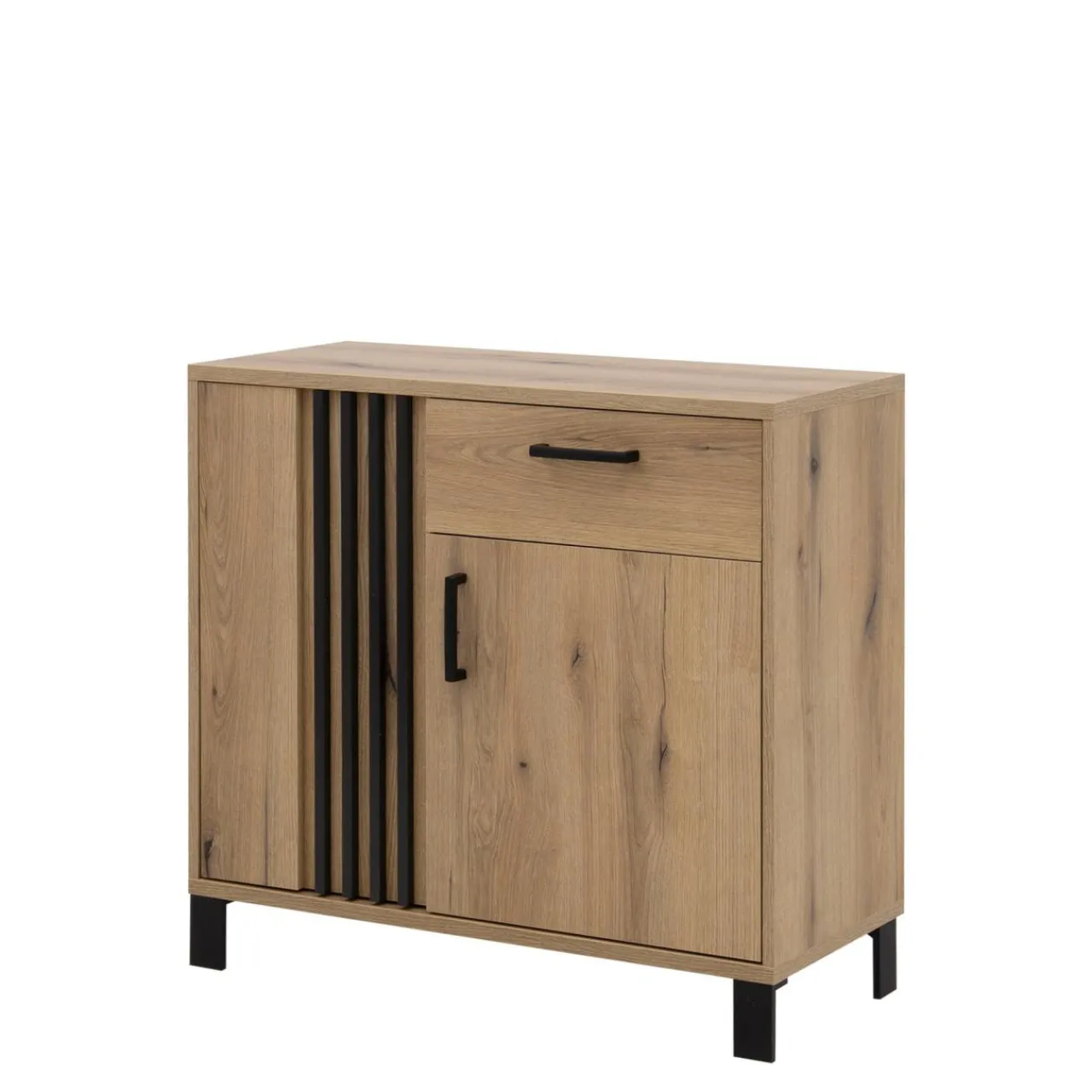 Szukasz nowoczesnego i praktycznego mebla do Twojego salonu? Komoda NOEL wyposażona w 2 wnęki ukryte za podwójnymi drzwiami i szufladę pozwala sprawnie uporządkować rzeczy.