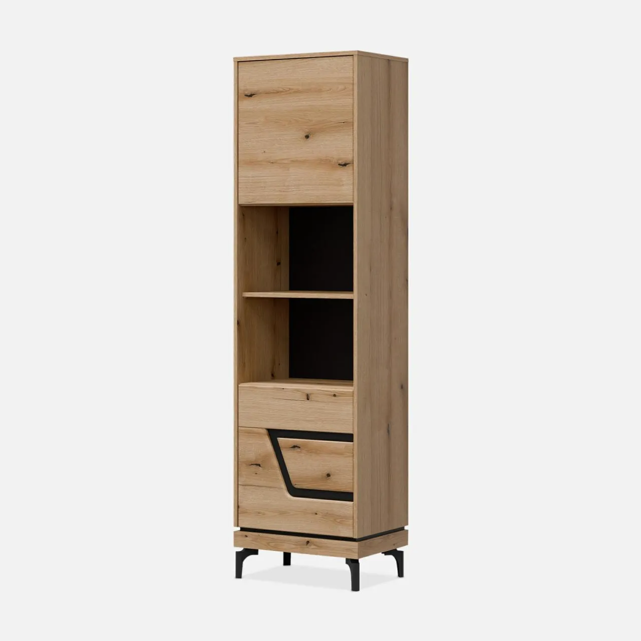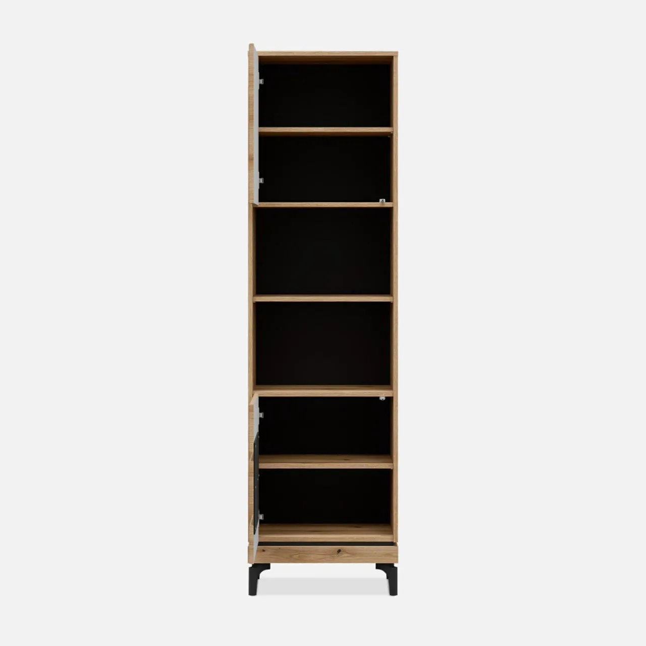 Regał KRIS zmieścisz nawet w małym pomieszczeniu. Uzupełnij ją przestrzeń między meblami, lub postaw na ścianie między pomieszczeniami, dzięki temu optycznie wydłużysz pomieszczenie.