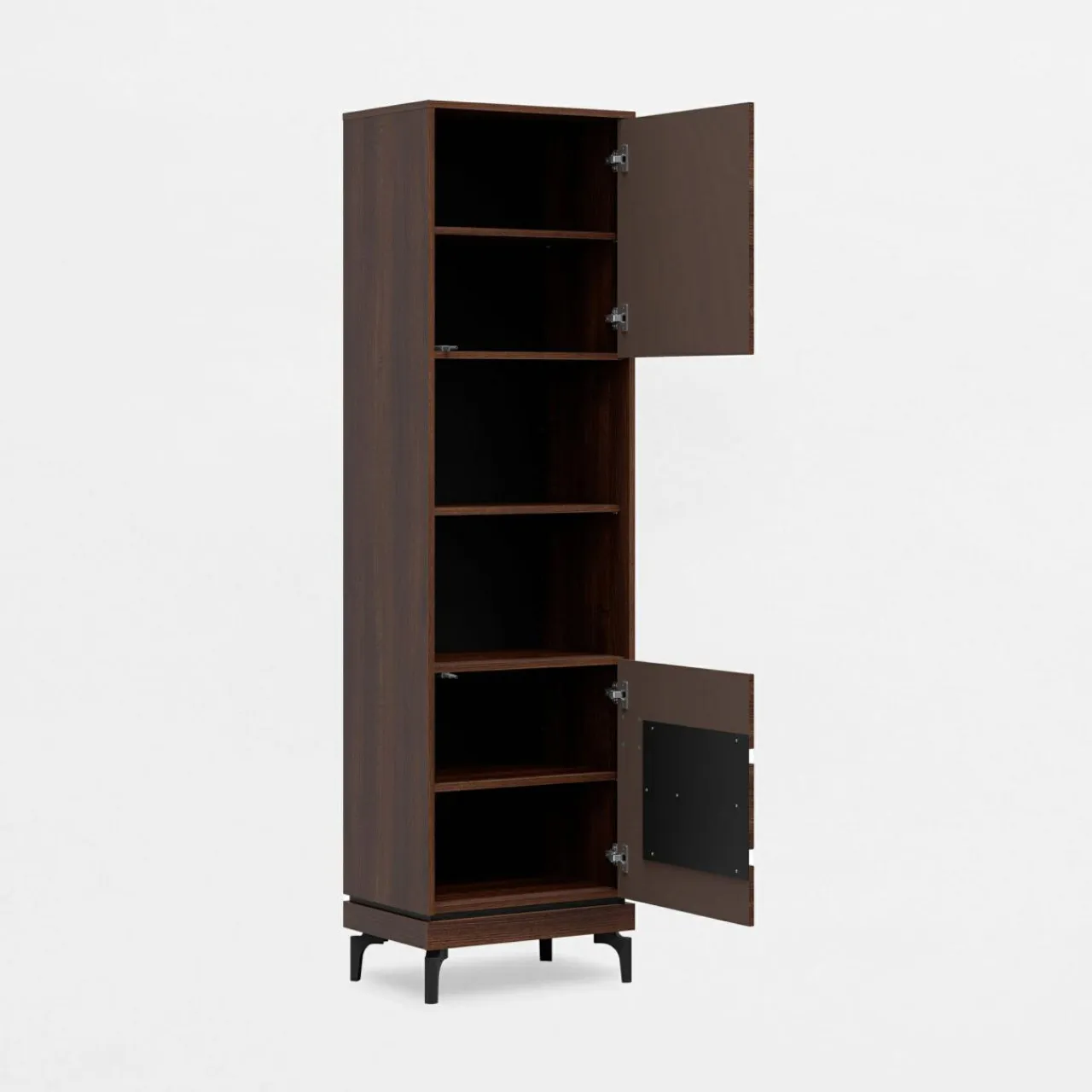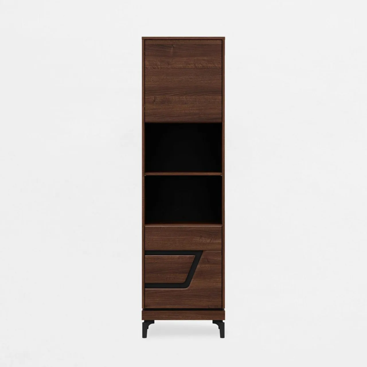 Regał VERO zmieścisz nawet w małym pomieszczeniu. Uzupełnij ją przestrzeń między meblami, lub postaw na ścianie między pomieszczeniami, dzięki temu optycznie wydłużysz pomieszczenie.