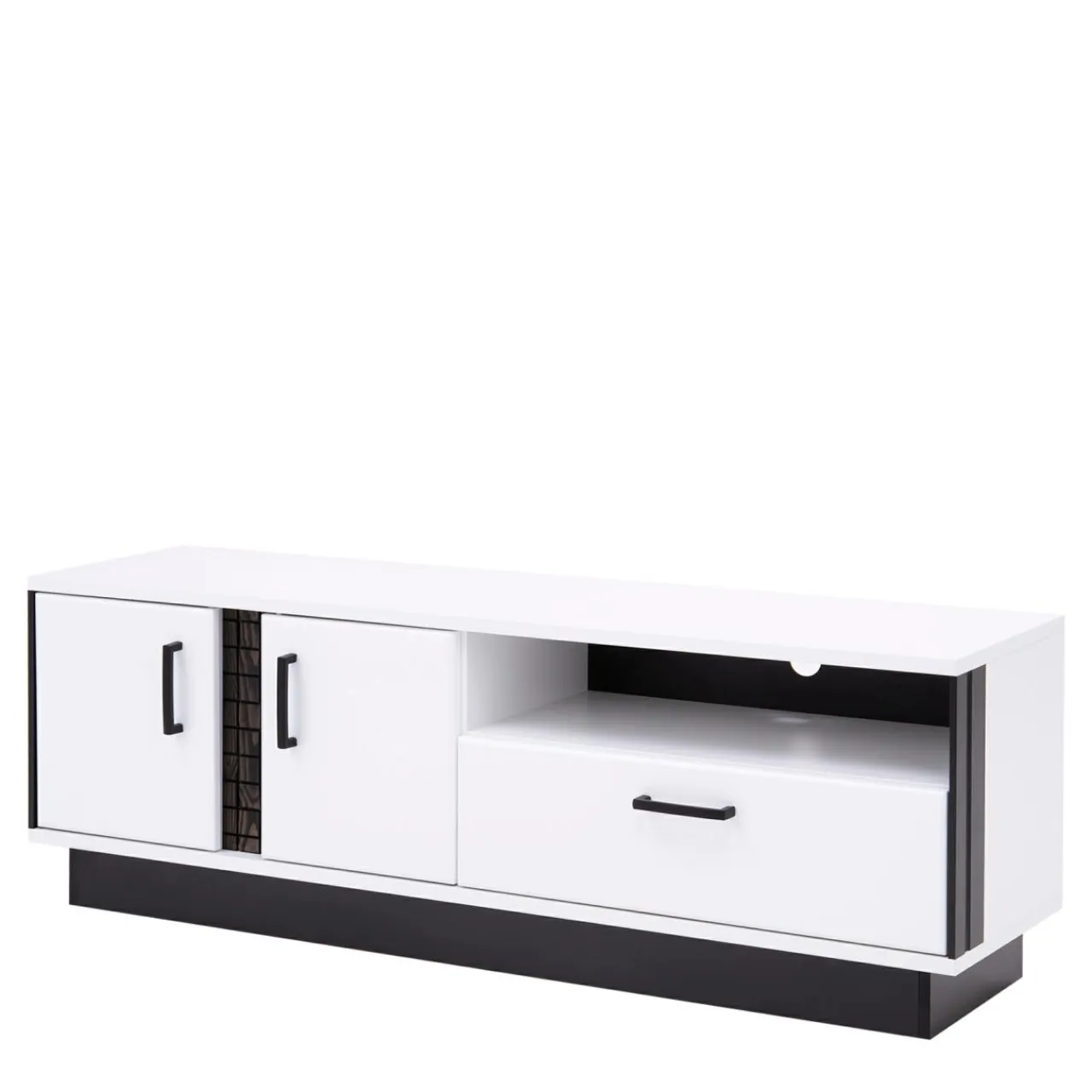- Pod blatem znajduje się otwarta wnęka, w której można umieścić dekodery i inne urządzenia elektroniczne. Z tyłu wnęki, na optymalnej wysokości jest umieszczony otwór, przez który można przełożyć kable, by podłączyć sprzęt do gniazdka;