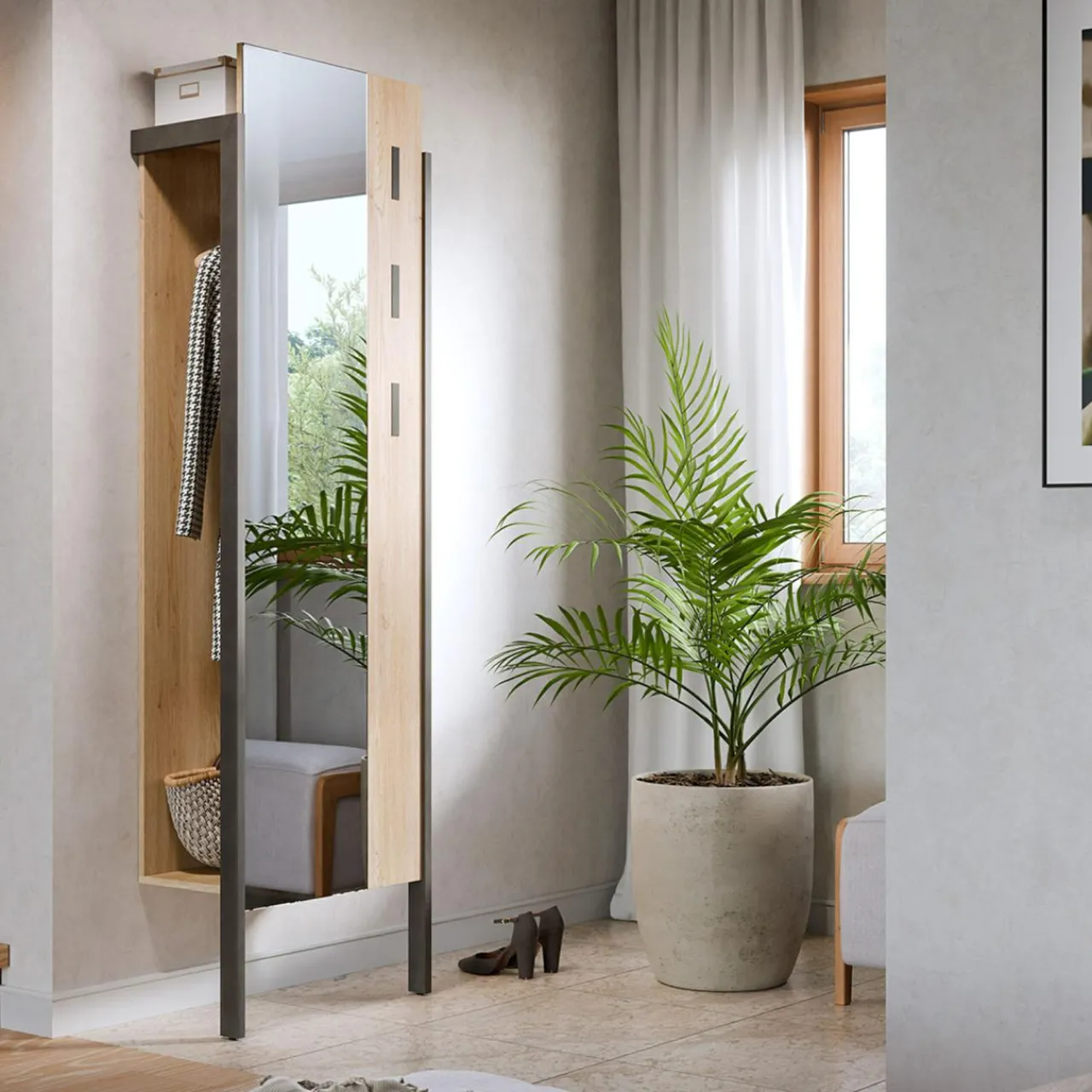 - Praktyczne lustro – wbudowane lustro optycznie powiększy przestrzeń i ułatwi codzienne przygotowania do wyjścia.