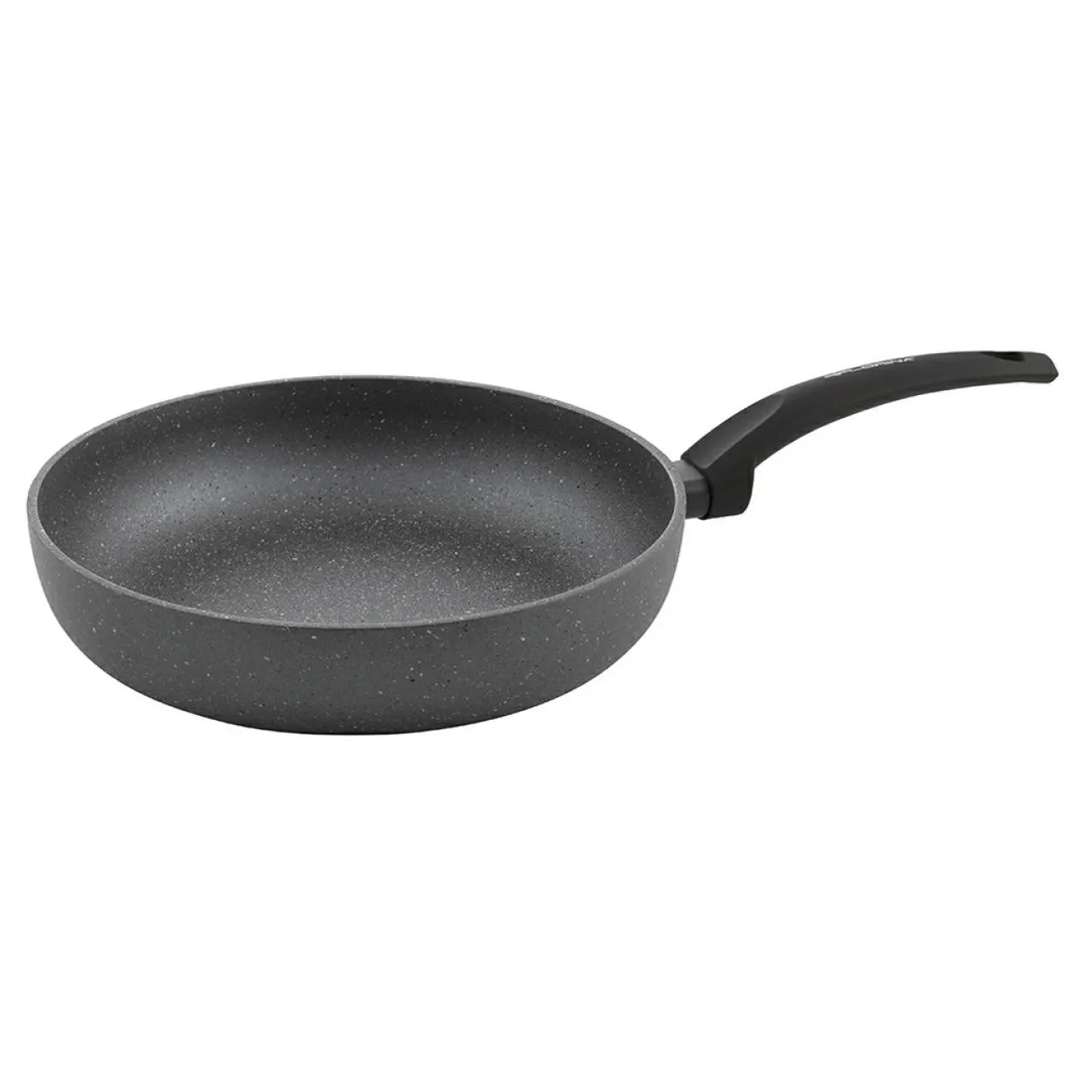 Patelnia jest wysoka na 5 cm i ma długą, wygodną rączkę w powłoce Soft Touch, która nie nagrzewa się podczas smażenia.