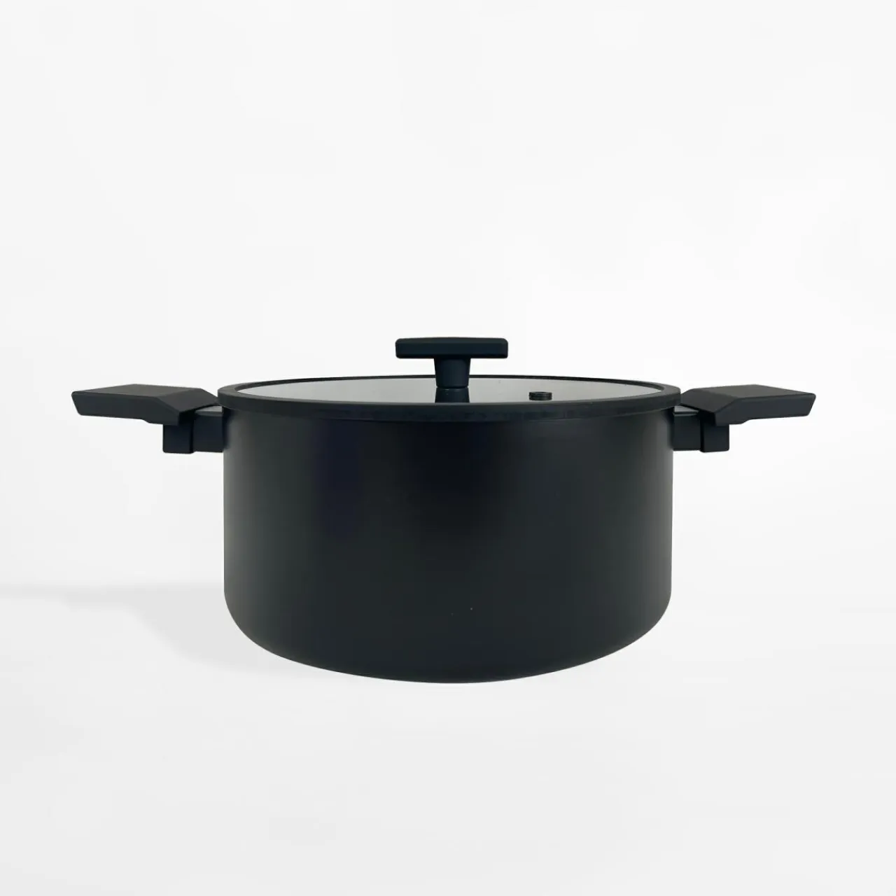 Aluminiowy garnek z kolekcji MODERN o czarnym kolorze, matowym wykończeniu podkreśli kuchnię w stylu loft, skandynawskim lub orientalnym.