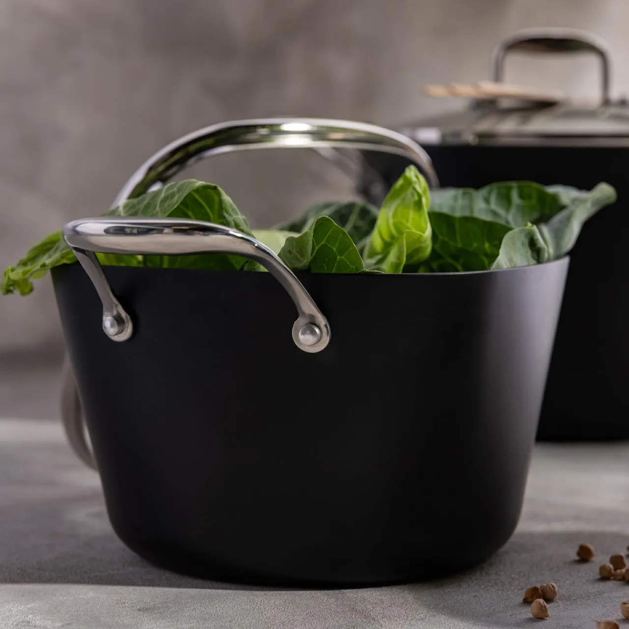Aluminiowy garnek QUADRATO posiada kwadratową pokrywkę.