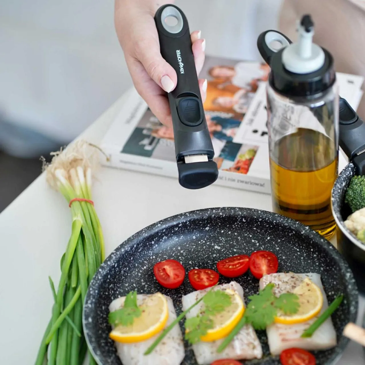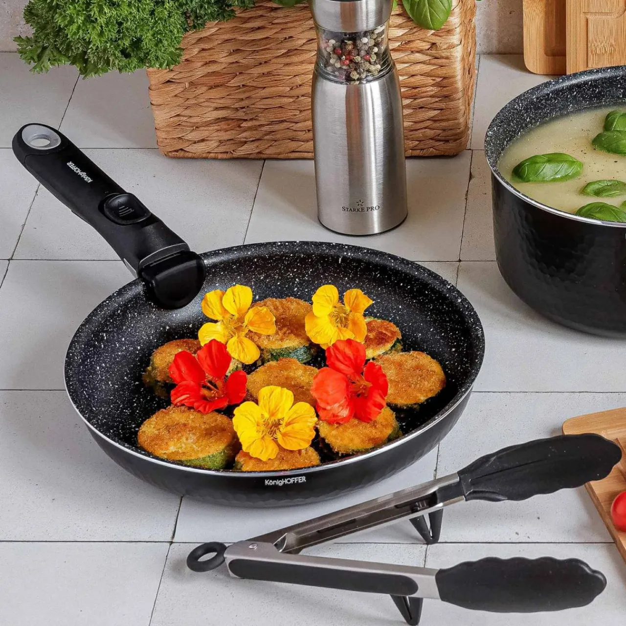Usmażysz na nich zdrowe posiłki, używając niewielkiej ilości tłuszczu. Ma nieprzywierająca powłokę MARBLE PLUS .