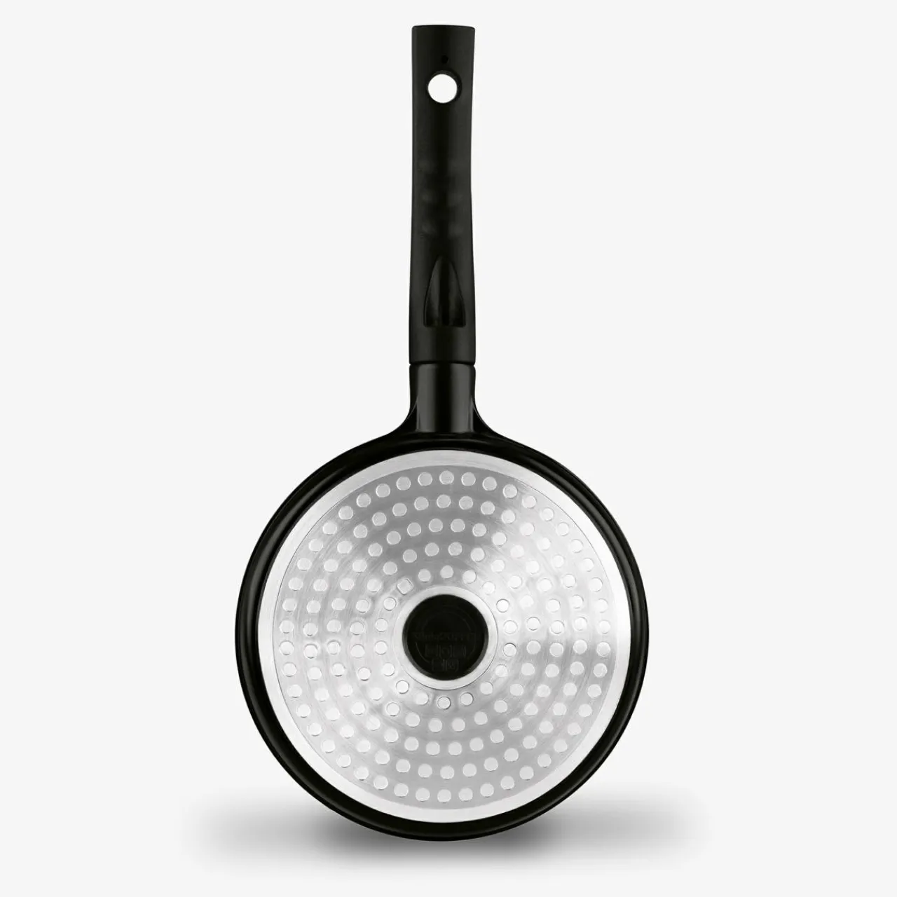 - Solidny korpus patelni z aluminium wymaga małej ilości tłuszczu do smażenia, dzięki czemu przygotujesz lekkostrawny posiłek.