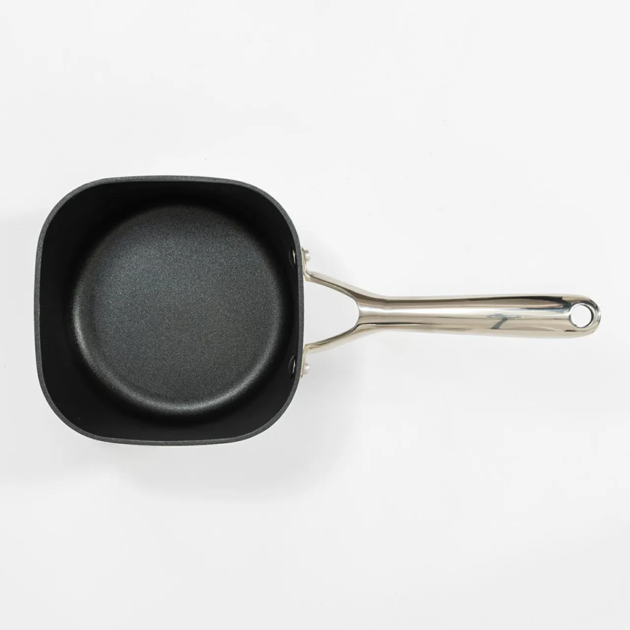 Aluminiowy rondel QUADRATO posiada kwadratową pokrywkę.