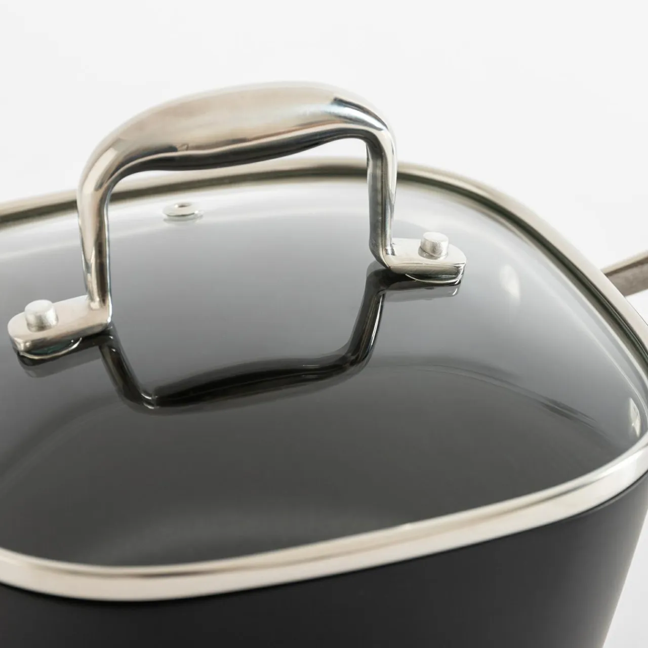 Aluminiowy rondel QUADRATO posiada kwadratową pokrywkę.