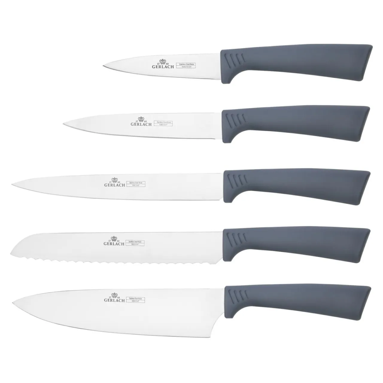 - Zestaw zawiera 5 noży, które usprawniają pracę w kuchni: