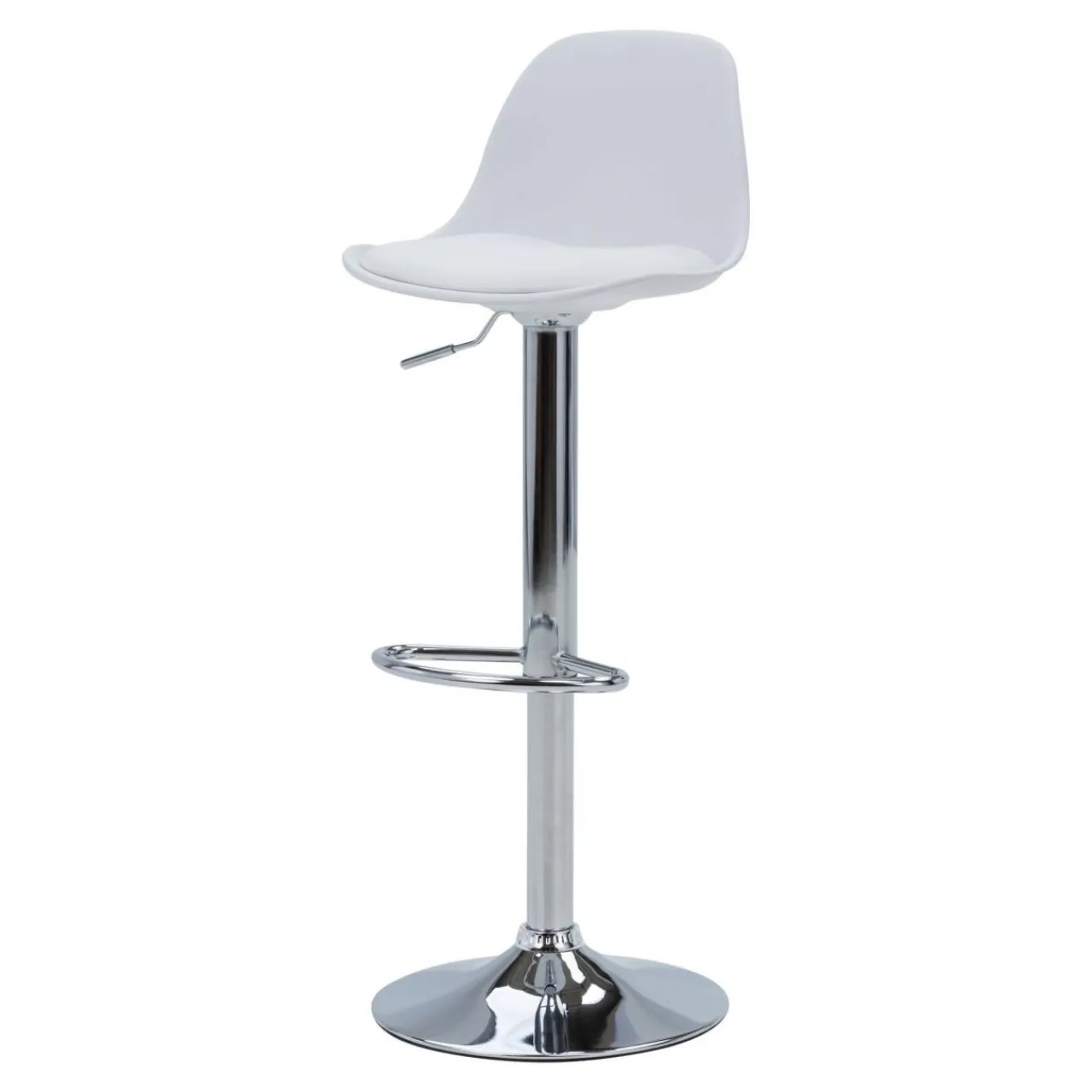 Krzesło barowe GRINNA dodaje klimatu w każdym eleganckim barze, a domowym wnętrzom nada prawdziwie klubowy charakter. Dzięki estetycznemu połączeniu chromowanego metalu z białą skórą ekologiczną, możesz je wkomponować w industrialne aranżacje.