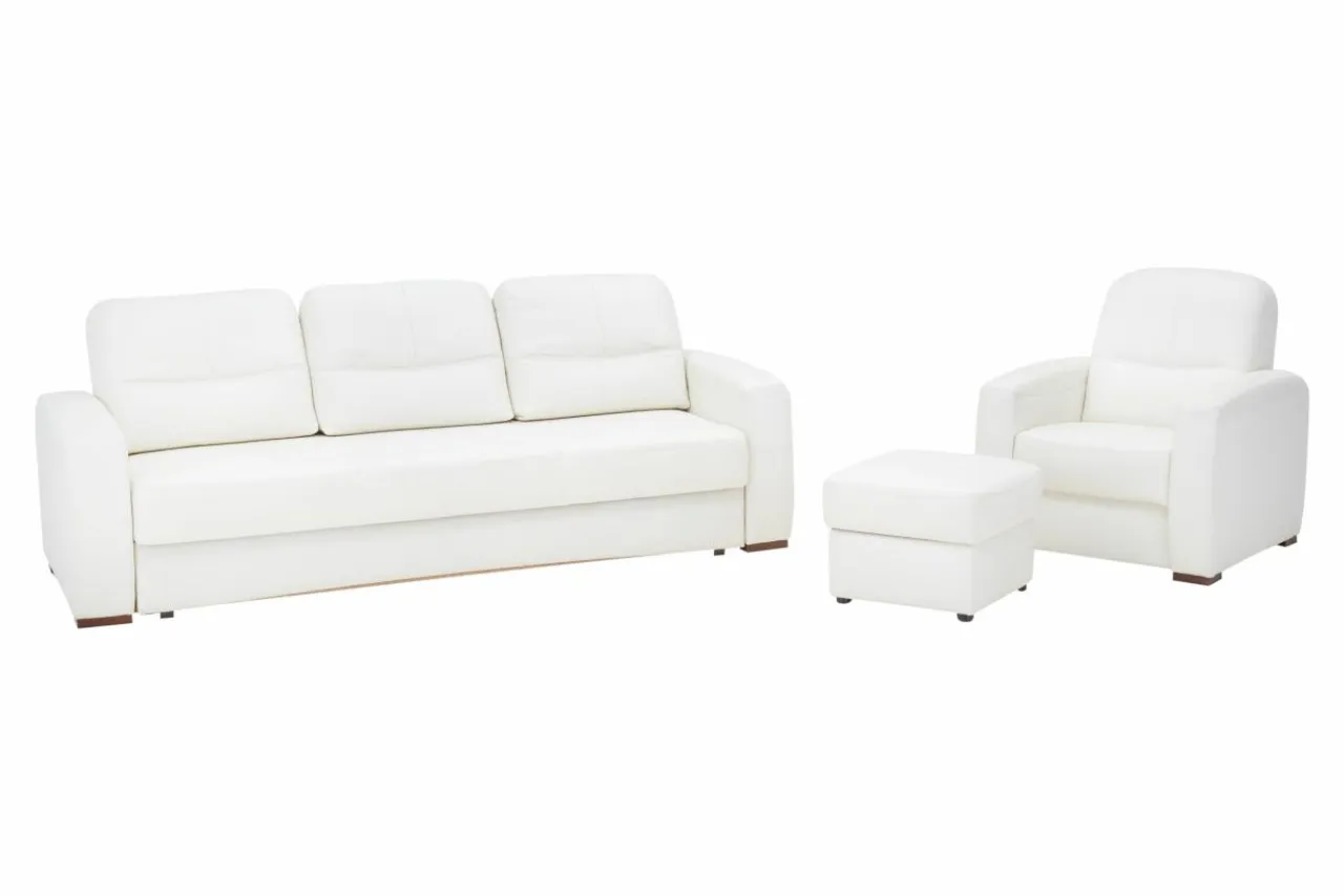 Komplet został wykonany w tzw. mixie. Najczęściej używane miejsca zostały pokryte skórą naturalną, natomiast miejsca niewidoczne skóra ekologiczną, co pozwoliło na obniżenie ceny. Dołączony do zestawu PUF jest otwierany, kryjąc pod siedziskiem całkiem pokaźny schowek.