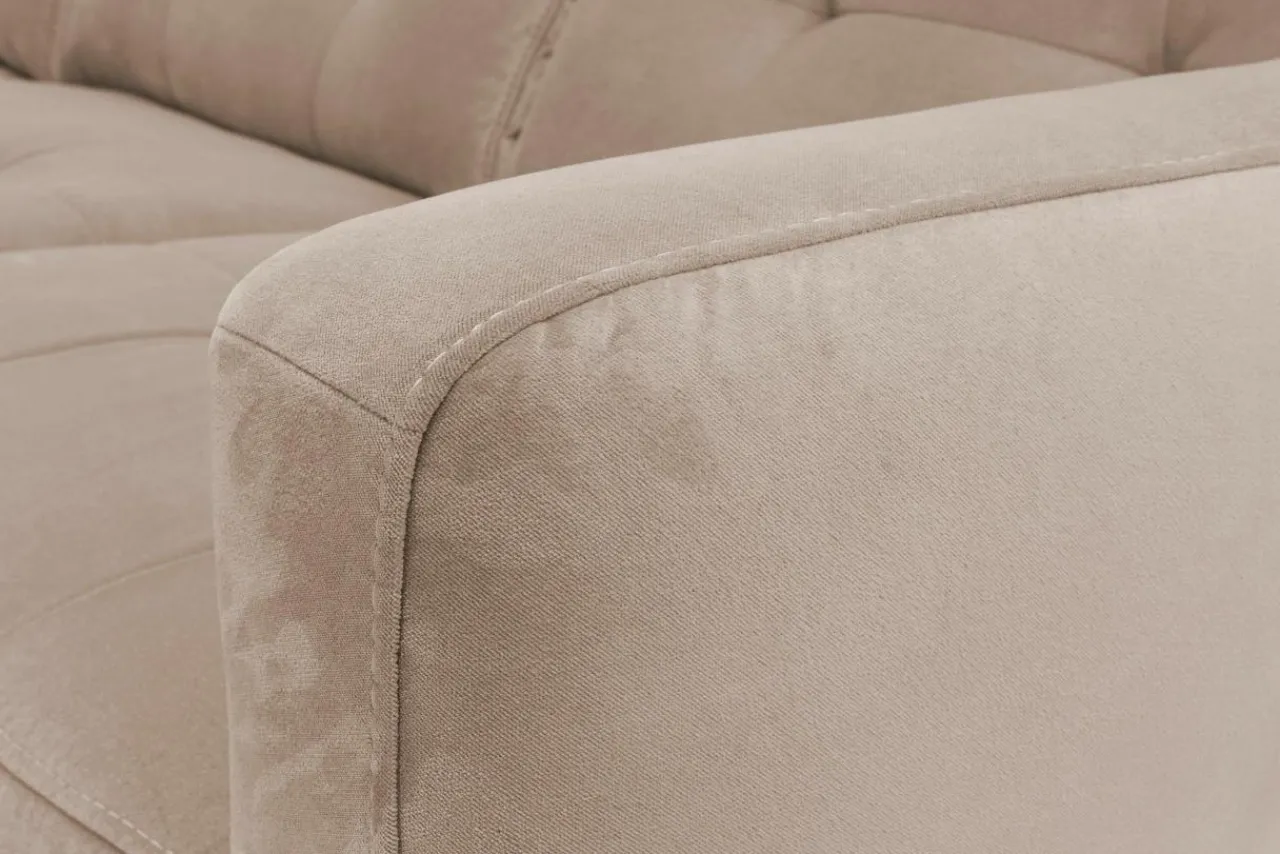 Stylowe pikowanie i przyjemna w dotyku, lekko połyskująca tkanina nadają meblowi wytworny charakter. Nowoczesna tapicerka jest łatwa w czyszczeniu – do usunięcia wielu rodzajów zabrudzeń wystarczy woda z mydłem. Wyposażono ją także w system ograniczonego wchłaniania wody.