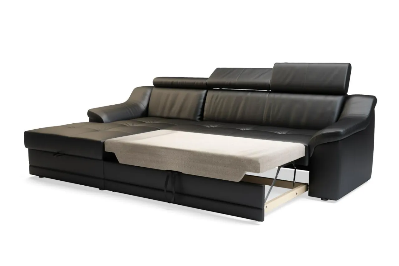 Mechanizm rozkładania typu delfin pozwala na szybką i bezproblemową zamianę narożnika w wygodne łóżko.