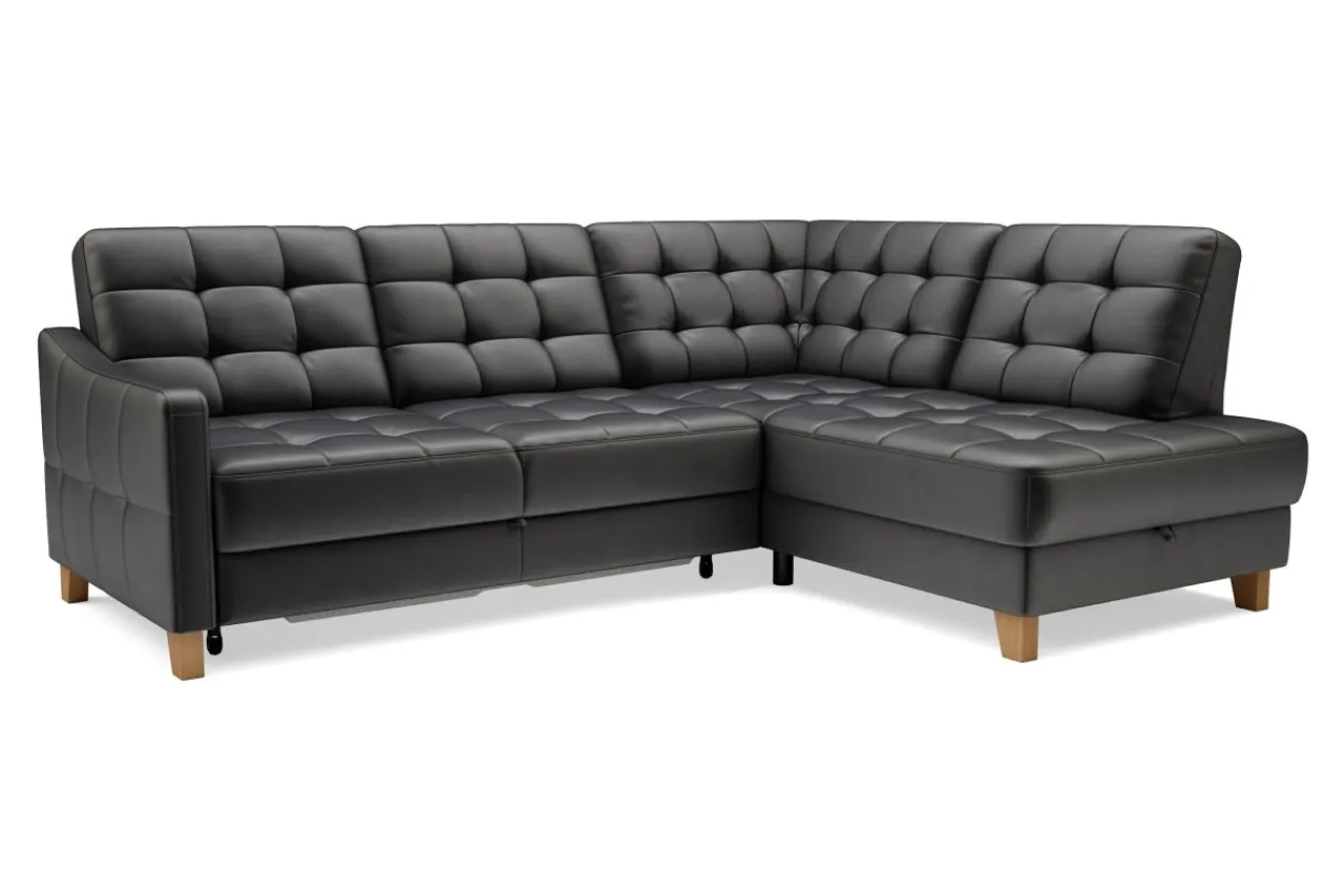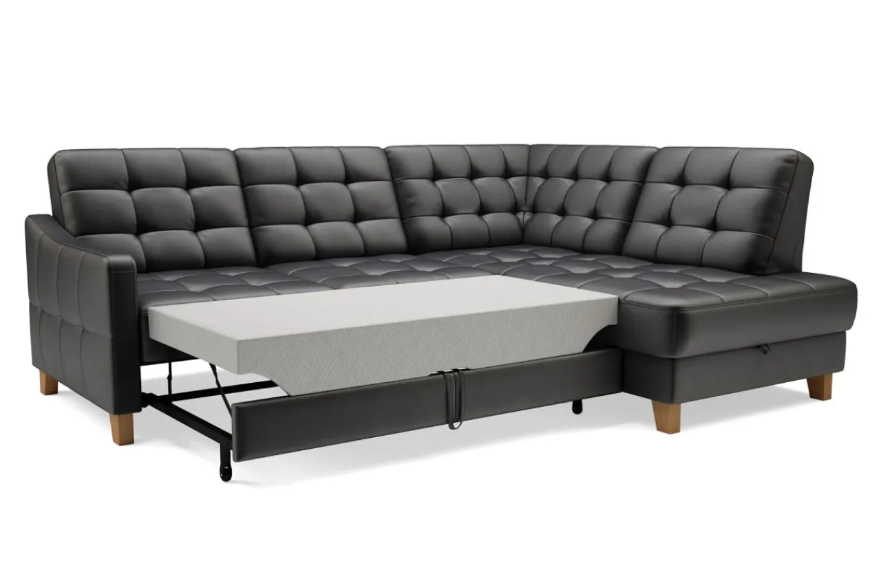 Narożnik można rozłożyć bez konieczności odsuwania go od ściany, dzięki łatwemu w obsłudze mechanizmowi – delfin.