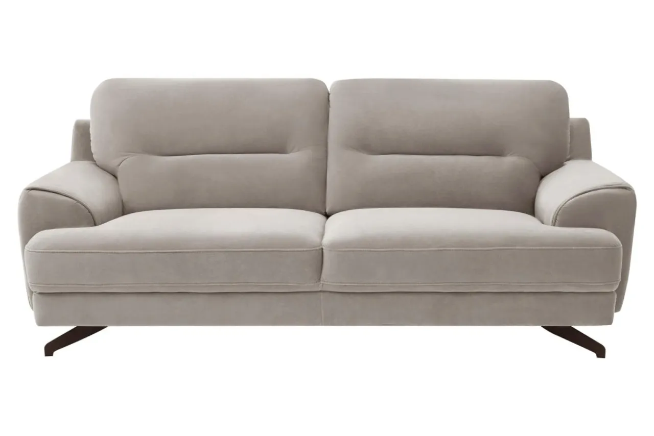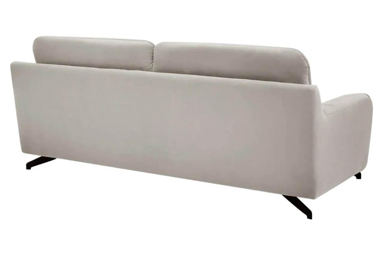 Do obicia mebla została wykorzystana tkanina SOLO – tkanina to bardzo przyjemny w dotyku, należący do grupy velvetów materiał pokryty specjalną apreturą utrudniającą wchłanianie rozlanych płynów do jej wnętrza i usuwanie plam na czas. Czarne, metalowe nóżki sofy nadają lekkości oraz ładnie dopełniają linię mebla.
