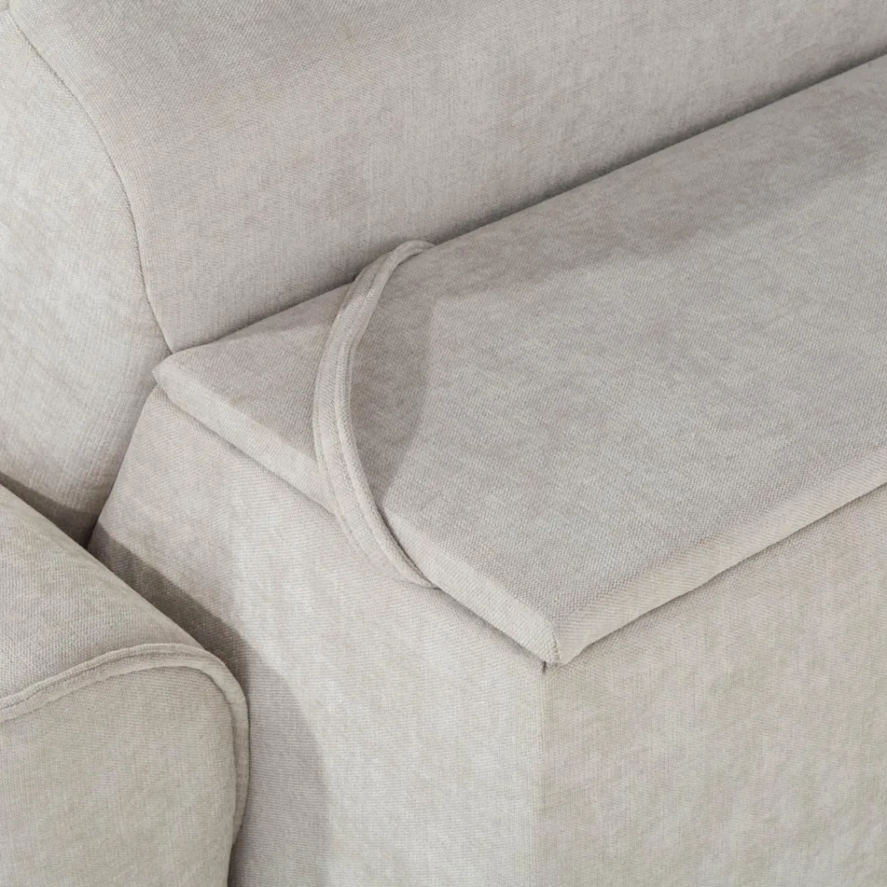 - Pociągnij uchwyt znajdujący się za sofą, by stworzyć komfortowe miejsce do spania dla Twoich gości. Powierzchnia po rozłożeniu ma wymiary 140×196 cm, dzięki czemu przenocujesz na niej 2 osoby.
