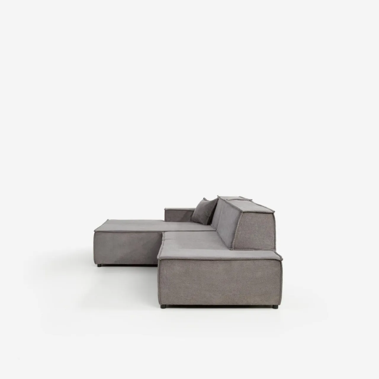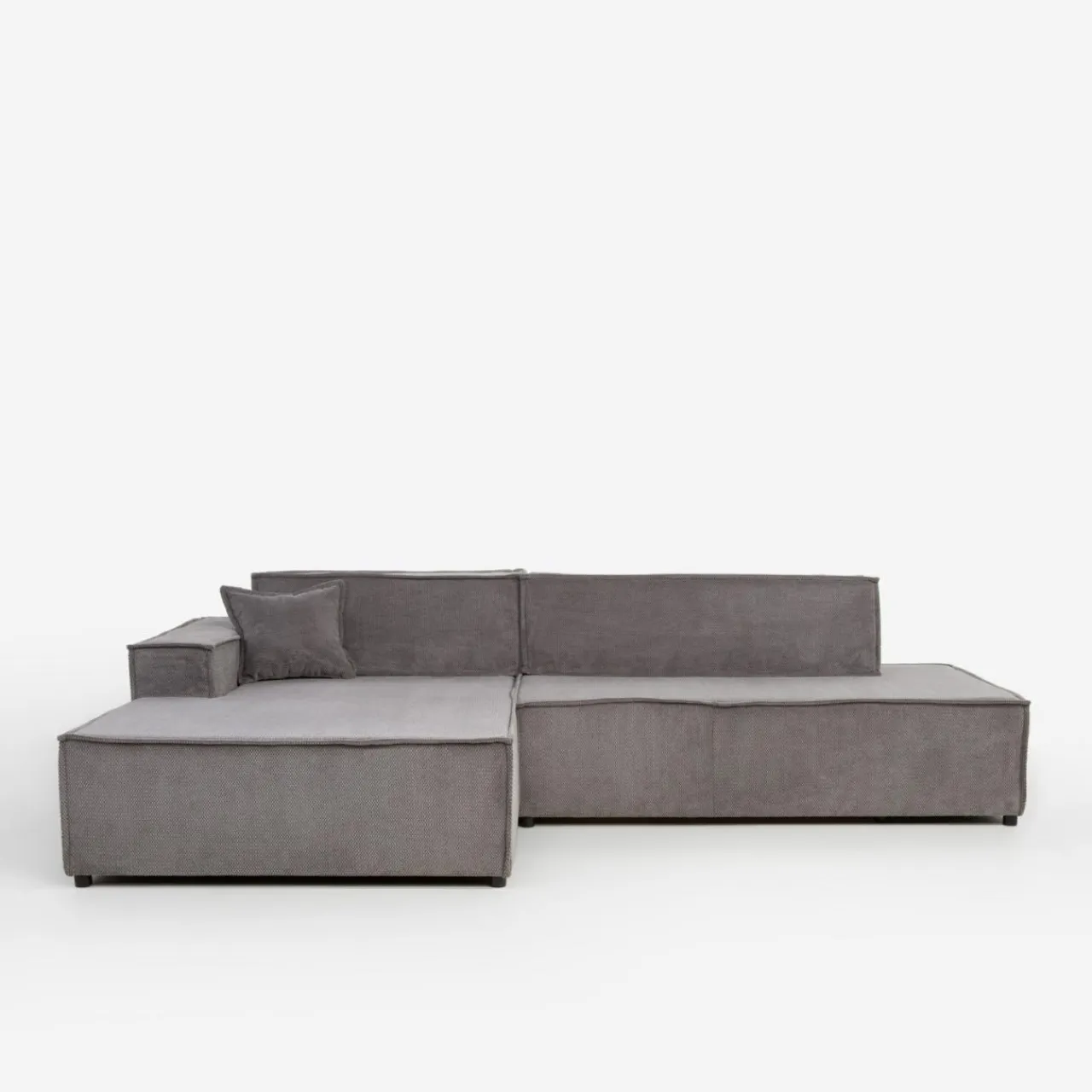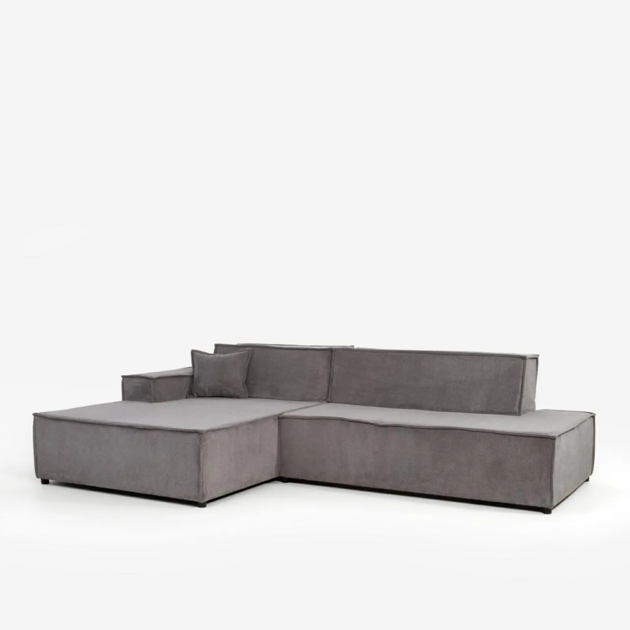 Narożnik w głębokim odcieniu ciemnej szarości doskonale sprawdzi się w nowoczesnych, loftowych lub industrialnych aranżacjach.
