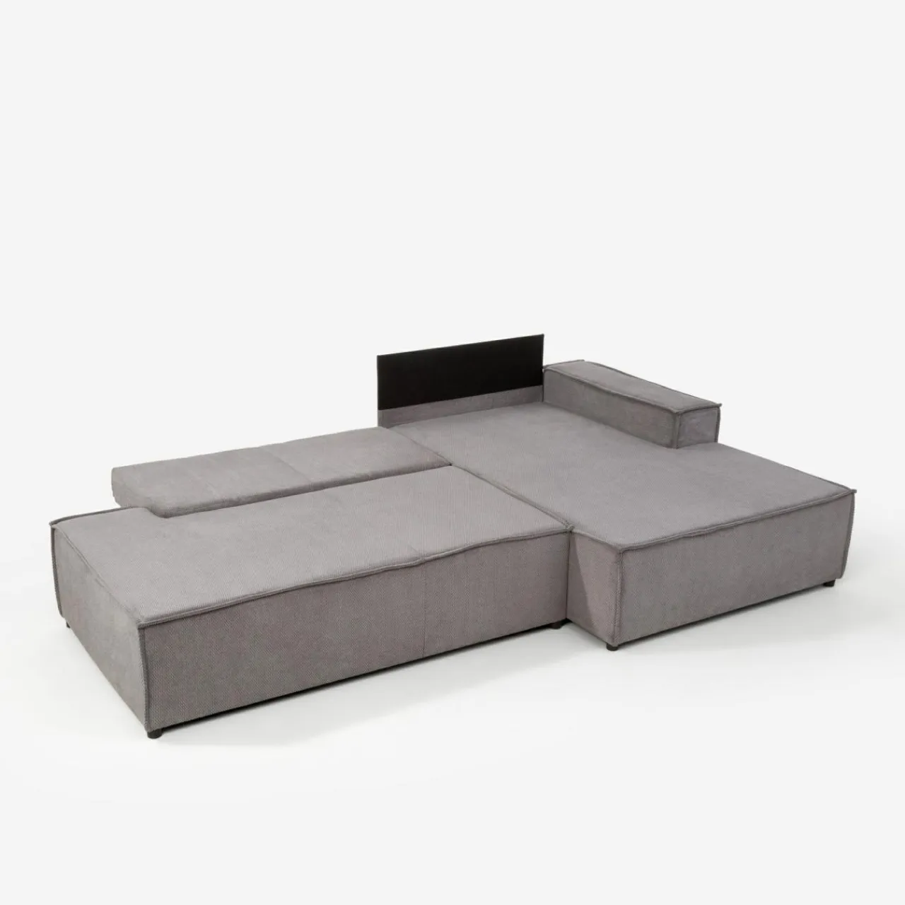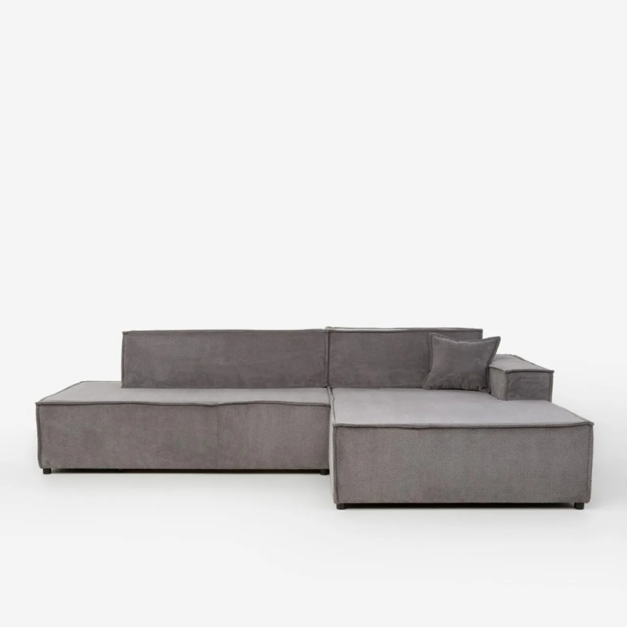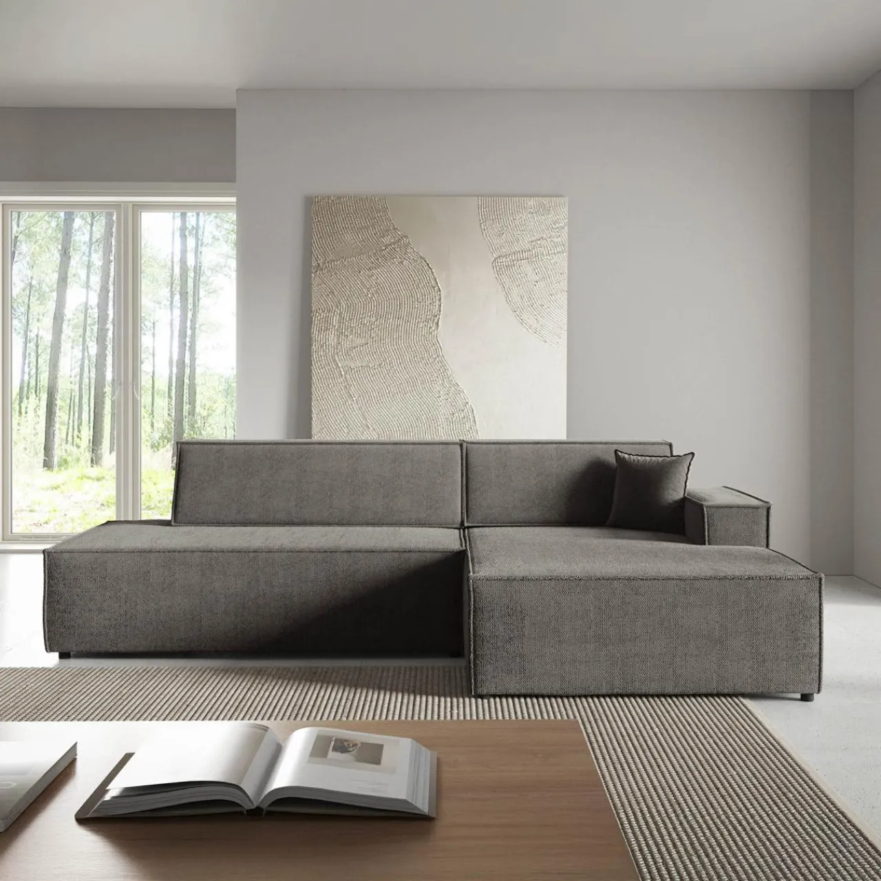 Narożnik TILIA w głębokim odcieniu ciemnej szarości doskonale sprawdzi się w nowoczesnych, loftowych lub industrialnych aranżacjach.