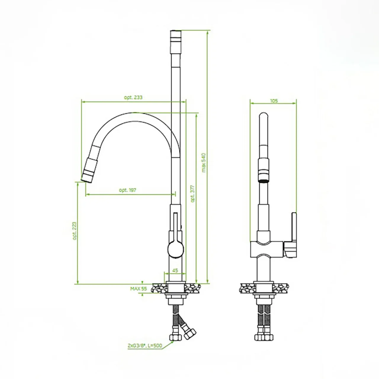 Bateria zlewozmywakowa LAVEO LEX z elastyczną wylewką to praktyczne rozwiązanie zaprojektowane z myślą o wygodzie codziennych prac w kuchni.