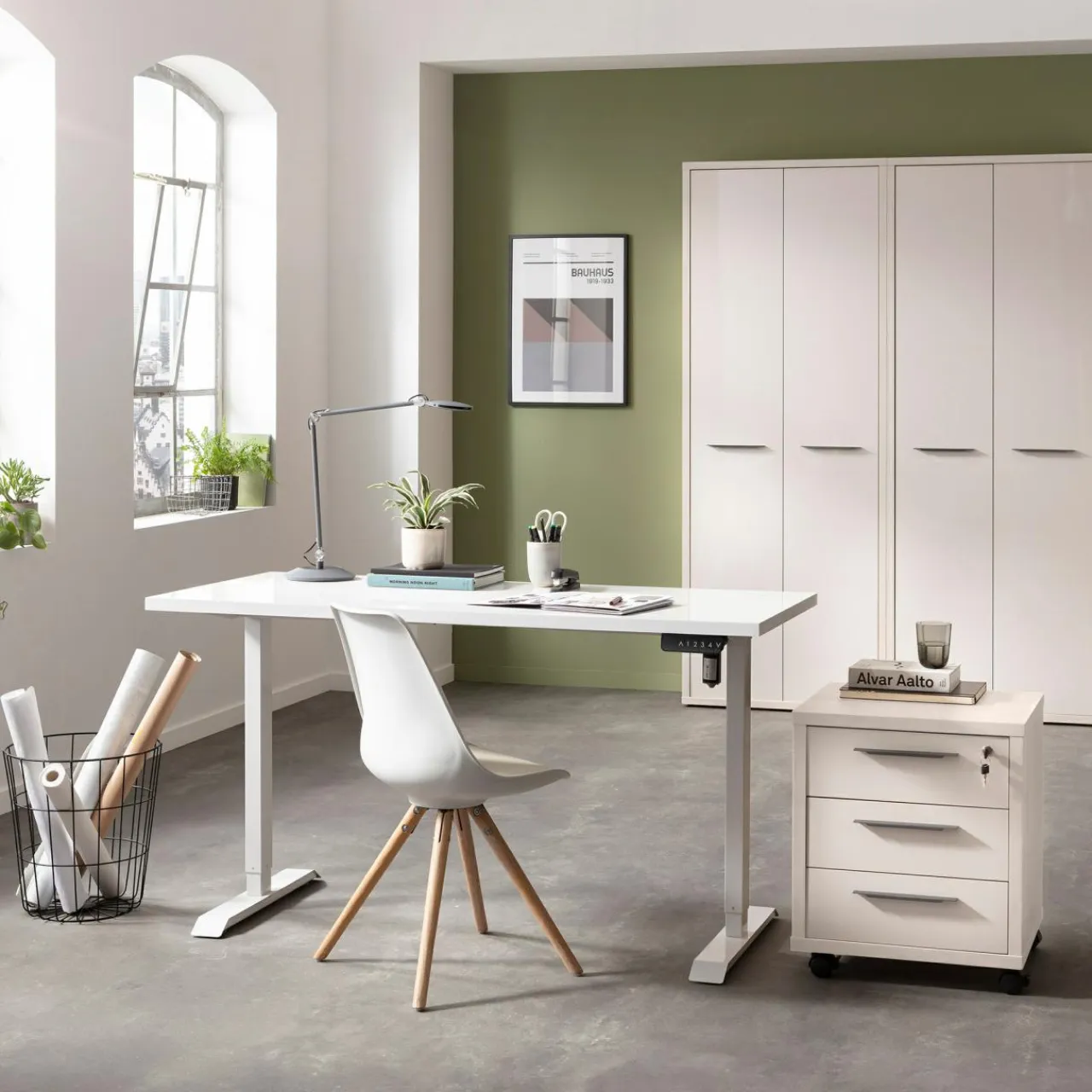 - Elektrycznie regulowany stelaż sprawia, że przy biurku możesz siedzieć lub stać.