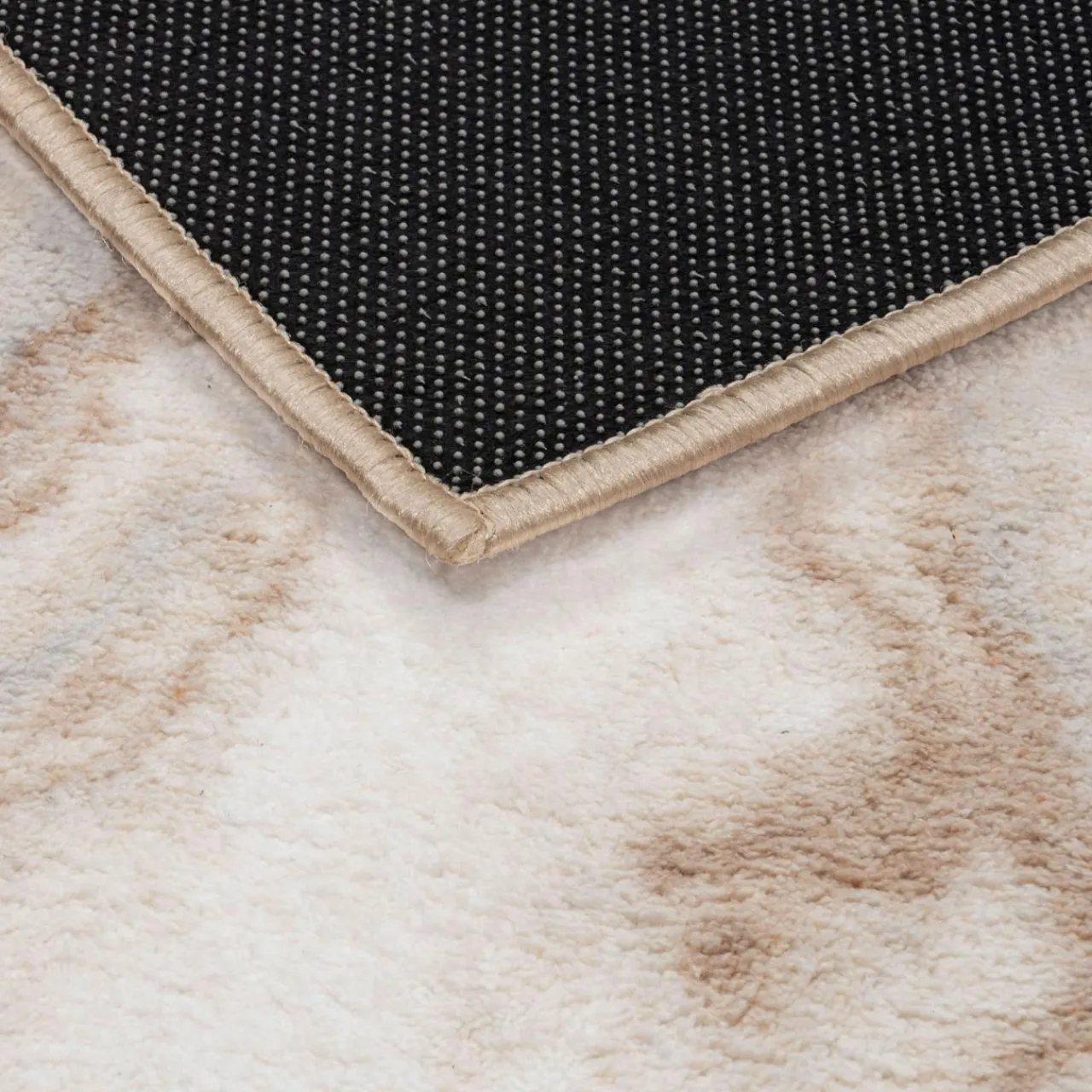 - Ocieplisz nim surową przestrzeń. W abstrakcyjnym wzorze pokrycia podłogowego odnajdziesz kolorystyczne wątki beżów, brązów i szarości. Wzór dywanu przywodzi na myśl strukturę kamienia – marmuru.