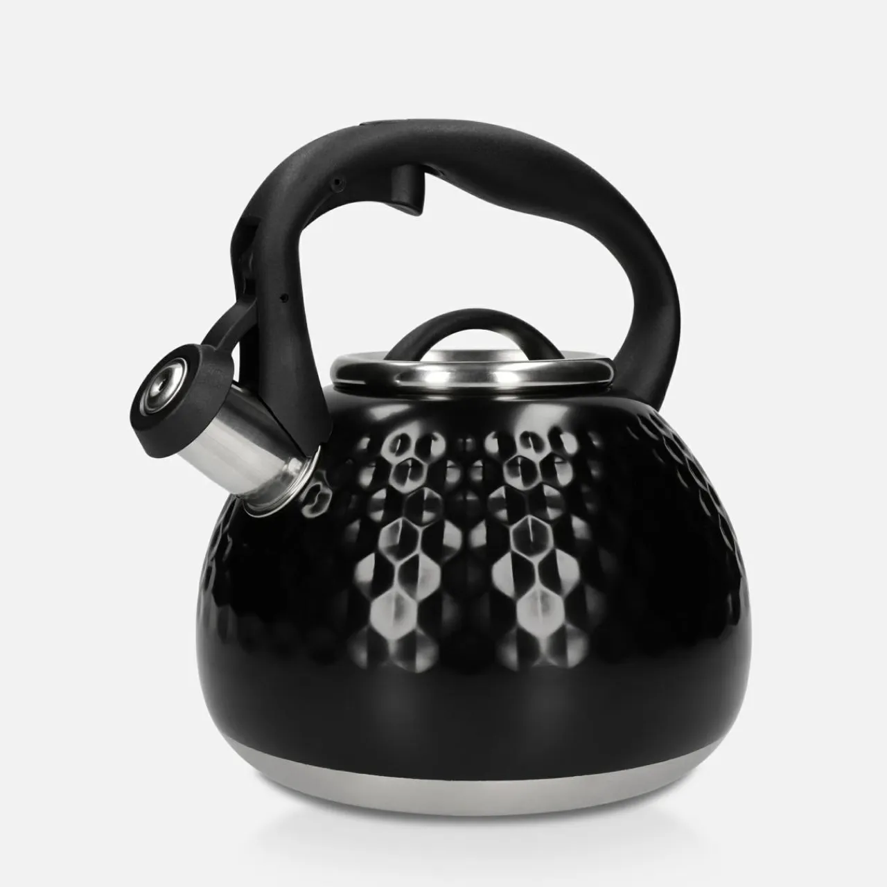 - Posiada gwizdek, który uniesiesz, naciskając na przycisk w ergonomicznym uchwycie. Wygodnie zalejesz wodą ulubiony napar.