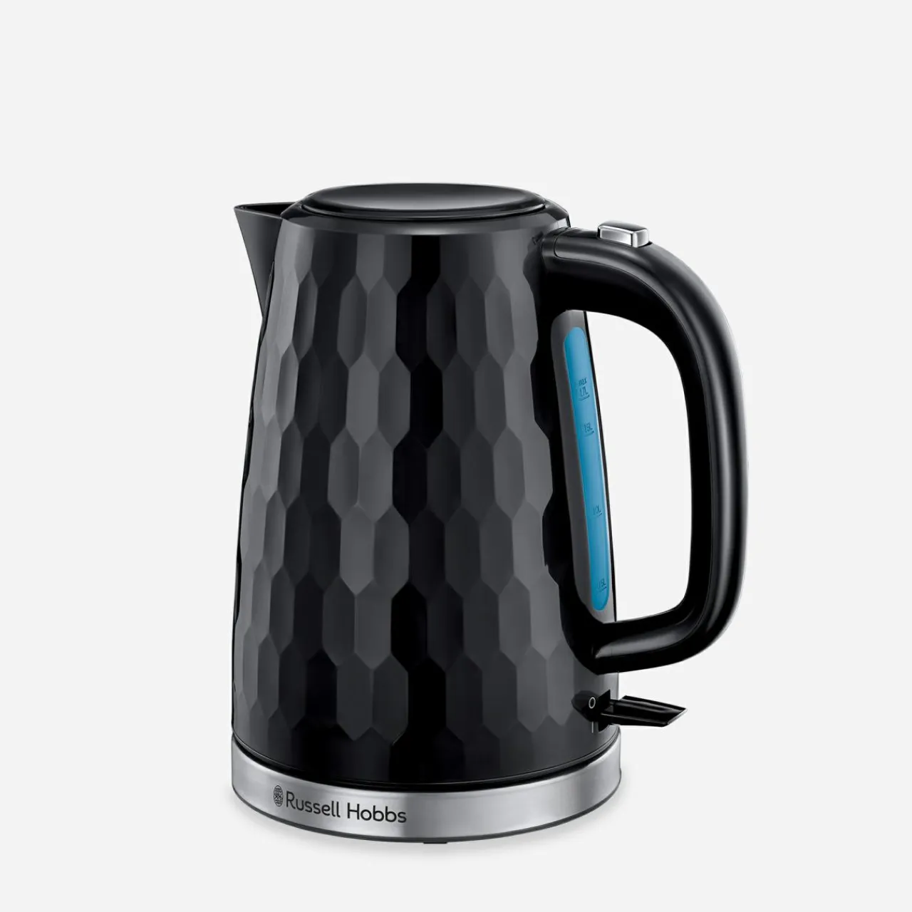 Czajnik Russell Hobbs Honeycomb inspirowany strukturą plastra miodu, połączenie czerni i stalowych akcentów sprawia, że idealnie wpasuje się w każdą kuchnię. Dzięki rozwiązaniom korzystanie z niego jest szybkie, wygodne i bezpieczne.