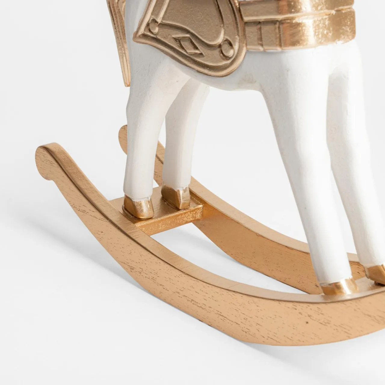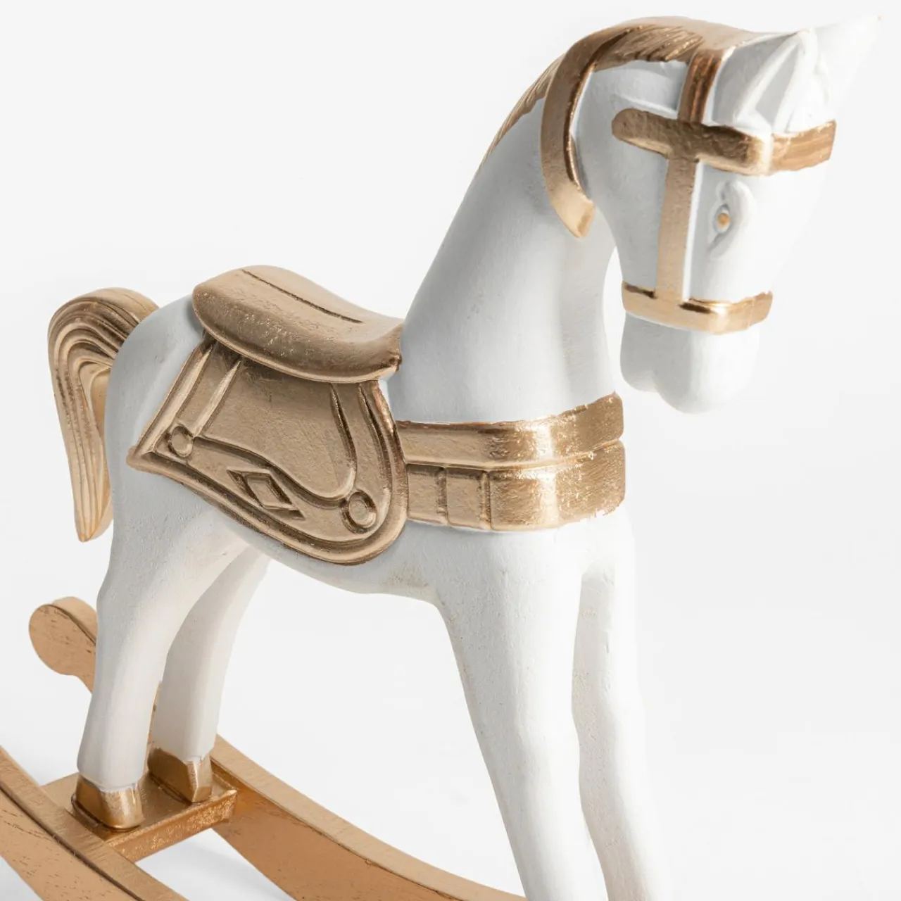 inny Dekoracja biało-złota KOŃ NA BIEGUNACH 22 cm