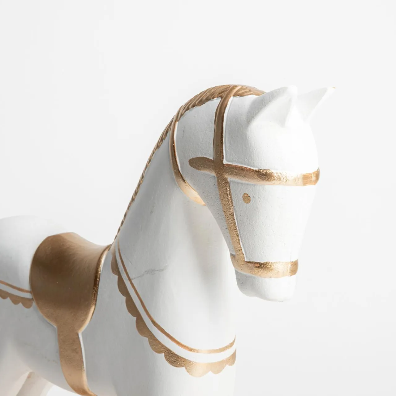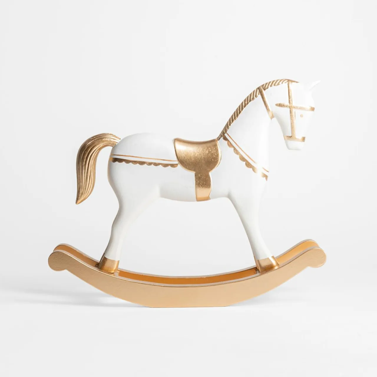 inny Dekoracja biało-złota KOŃ NA BIEGUNACH 30 cm
