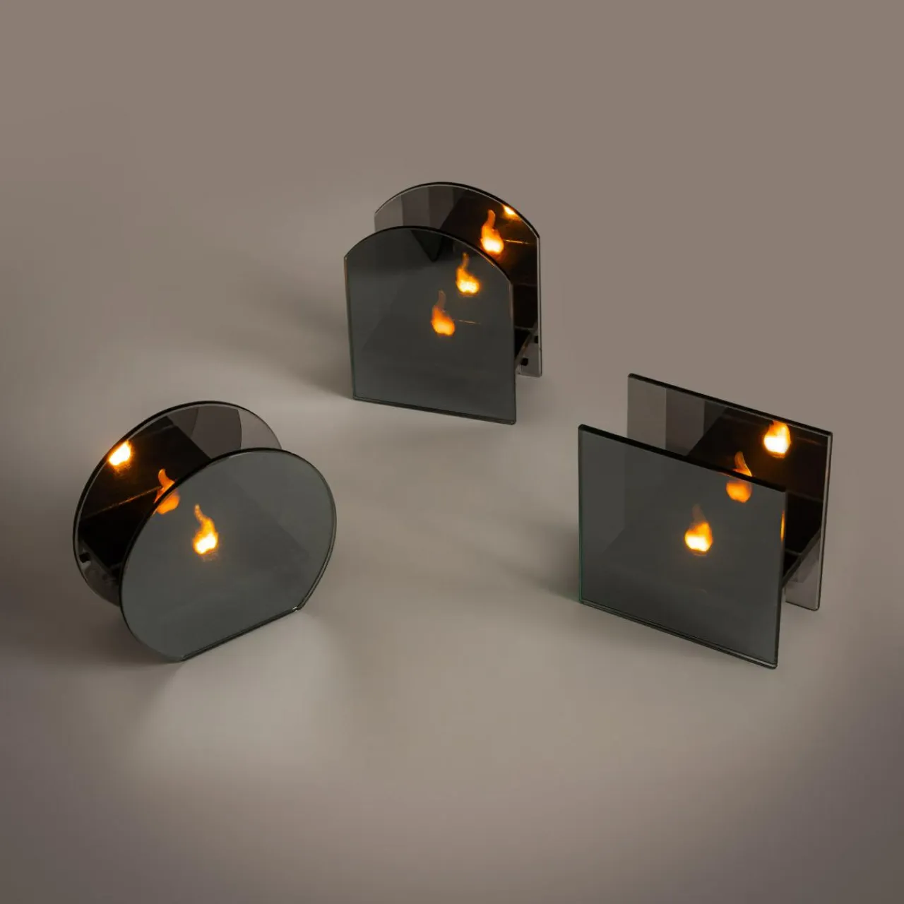 Kolekcja obejmuje kilka wersji tej dekoracji, które różnią się miedzy sobą kształtem szklanych przyciemnianych płyt.