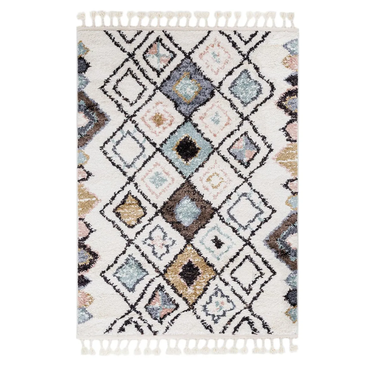 Beżowy dywan ALASKA z wzorem w romby o różnorodnej, ciemnej i pastelowej kolorystyce, uatrakcyjni Twój salon lub sypialnię.