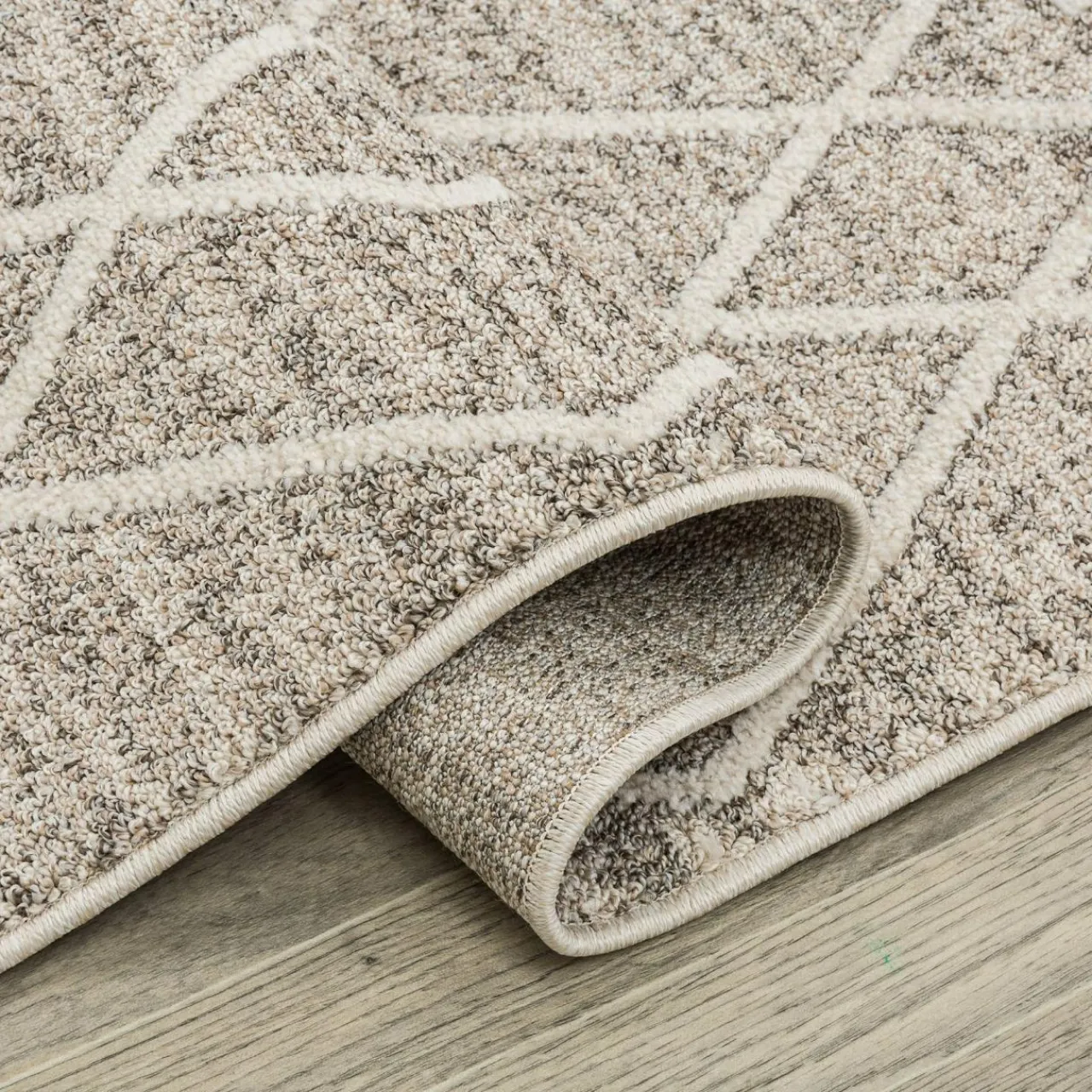 Geometryczny dywan PAULA charakteryzuje regularny wzór w romby. Świetnie odnajdzie się w boho i etno wnętrzach, w otoczeniu drewnianych mebli, roślin w doniczkach i wiklinowych koszy.