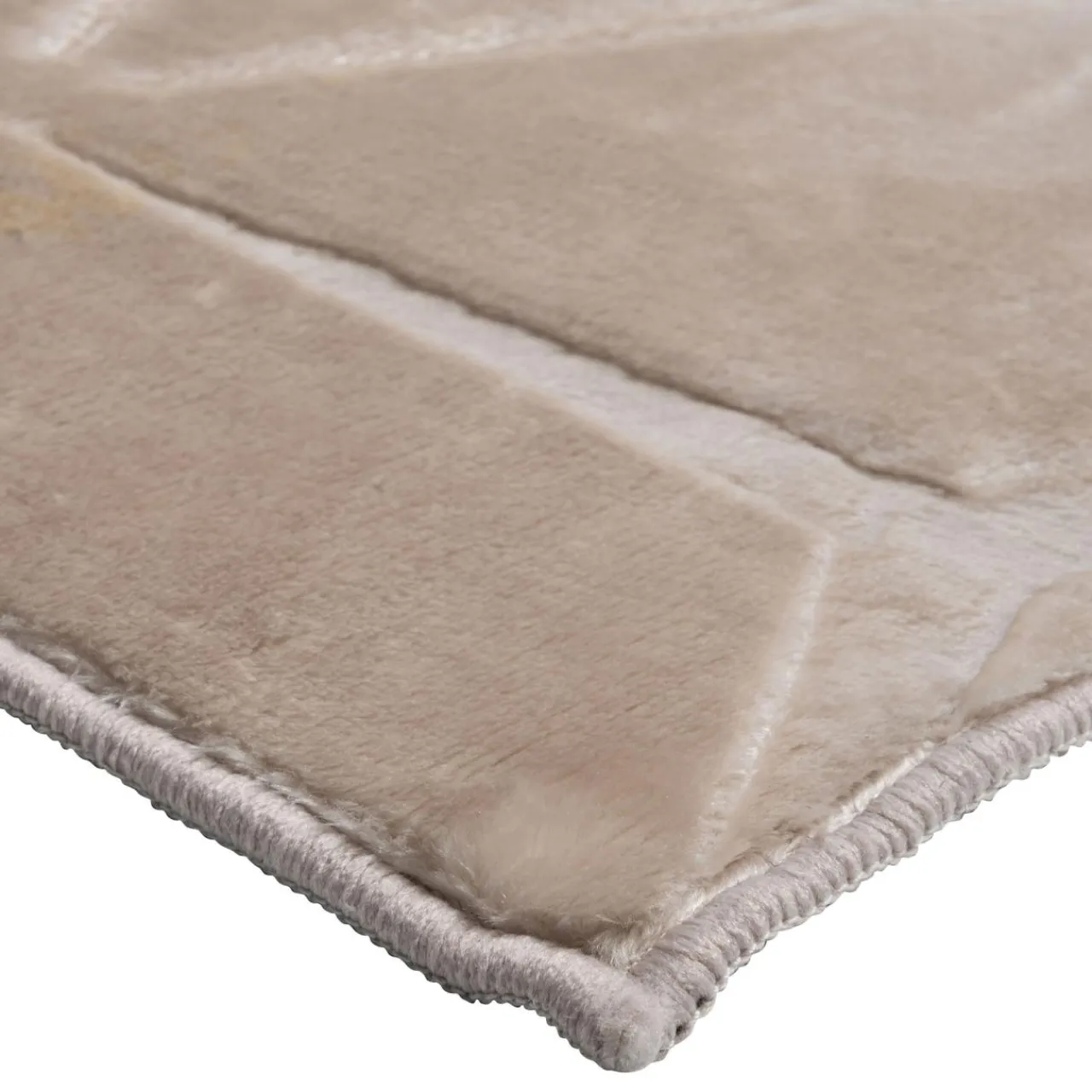 - Runo dywanu jest dwupoziomowe, dzięki temu powstaje ciekawy efekt 3 D. Geometryczny wzór jest wytłoczony w welurze. Światło będzie załamywało się na jego powierzchni w intrygujący sposób.