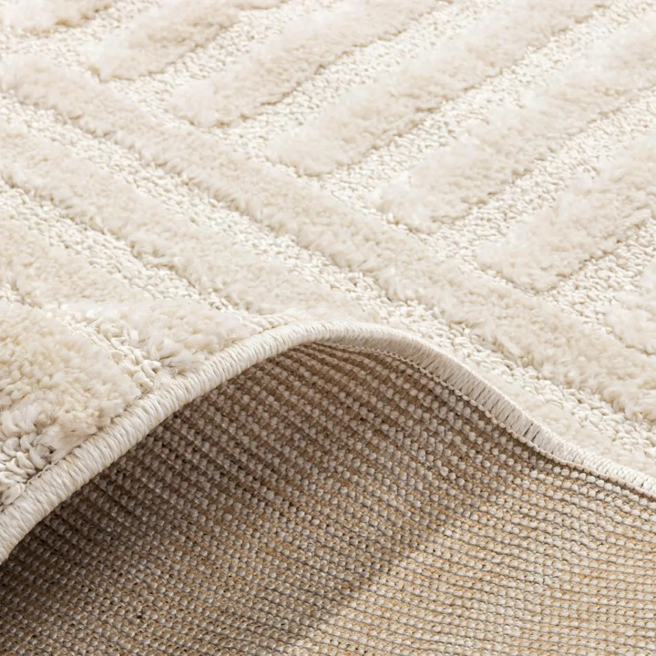 - Stonowany biało-kremowy kolor dywanu wpasuje się we wnętrza w stylu skandynawskim, minimalistycznym czy nowoczesnym.