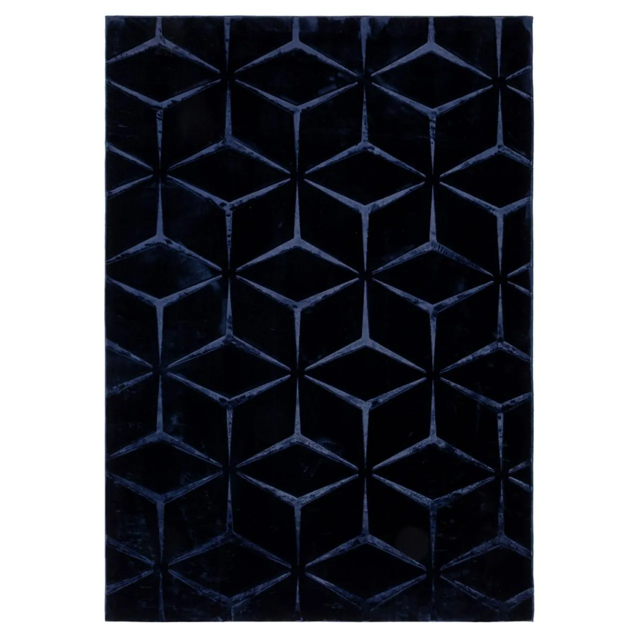 - Runo dywanu jest dwupoziomowe, dzięki temu powstaje ciekawy efekt 3 D. Geometryczny wzór jest wytłoczony w welurze. Światło będzie załamywało się na jego powierzchni w intrygujący sposób.