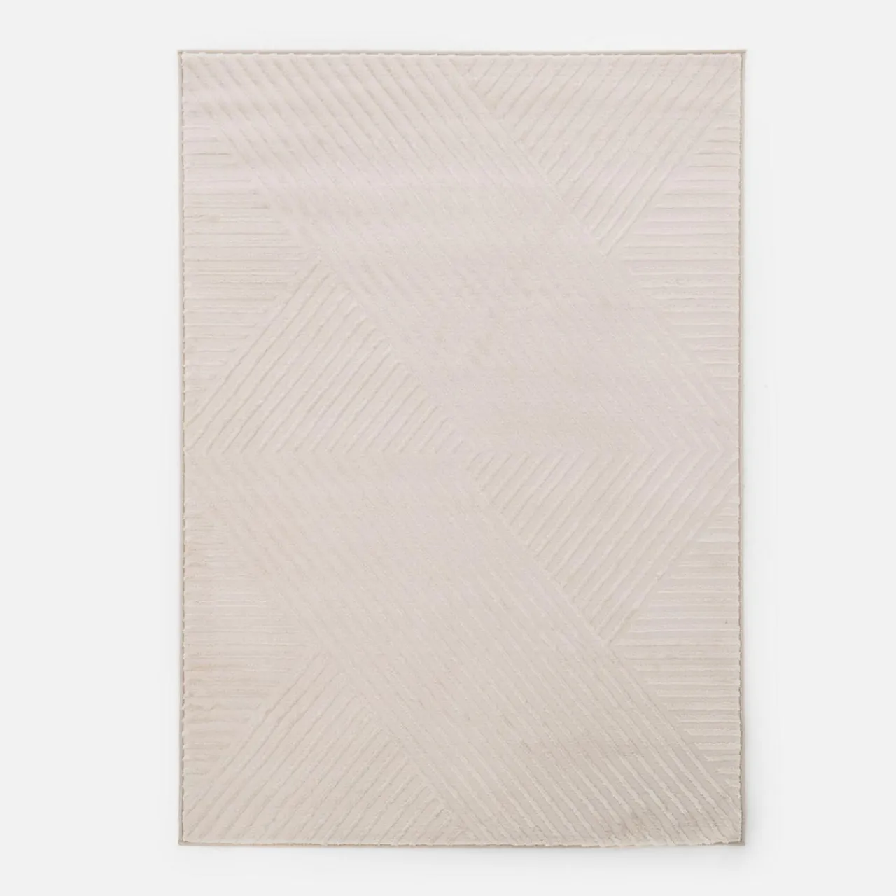 Dywan dzięki połączeniu długiego i krótkiego włosia tworzy efekt 3D mieniący się odcieniami kremu.