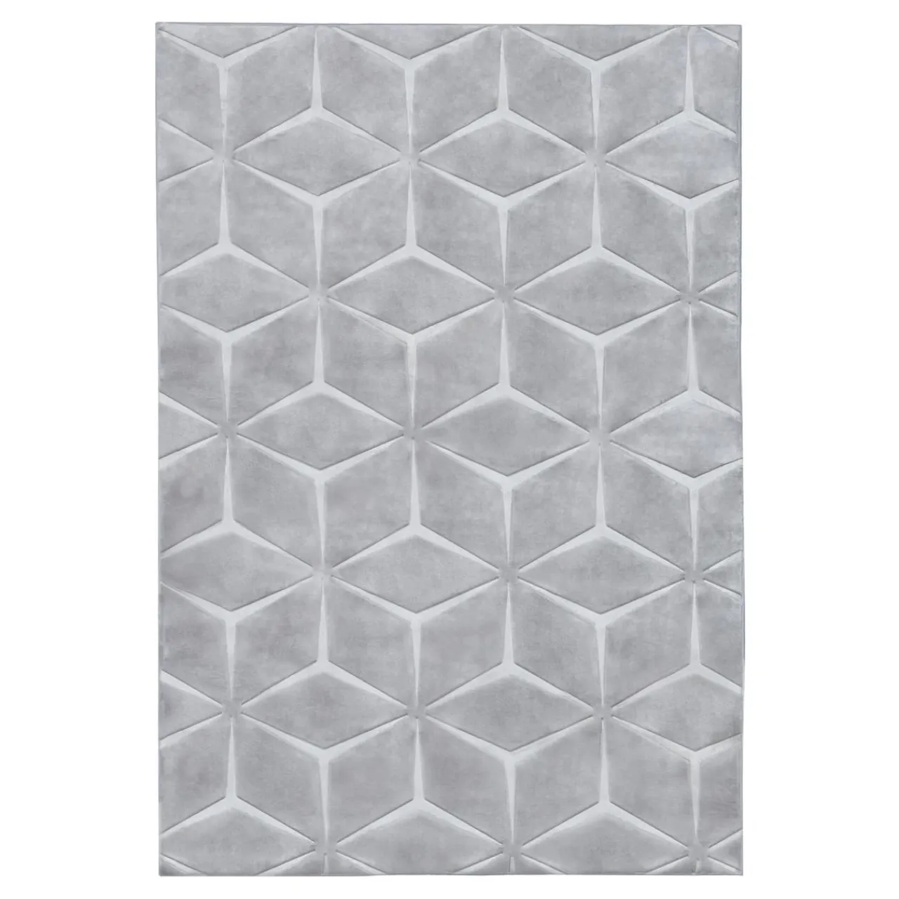 - Runo dywanu jest dwupoziomowe, dzięki temu powstaje ciekawy efekt 3 D. Geometryczny wzór jest wytłoczony w welurze. Światło będzie załamywało się na jego powierzchni w intrygujący sposób.