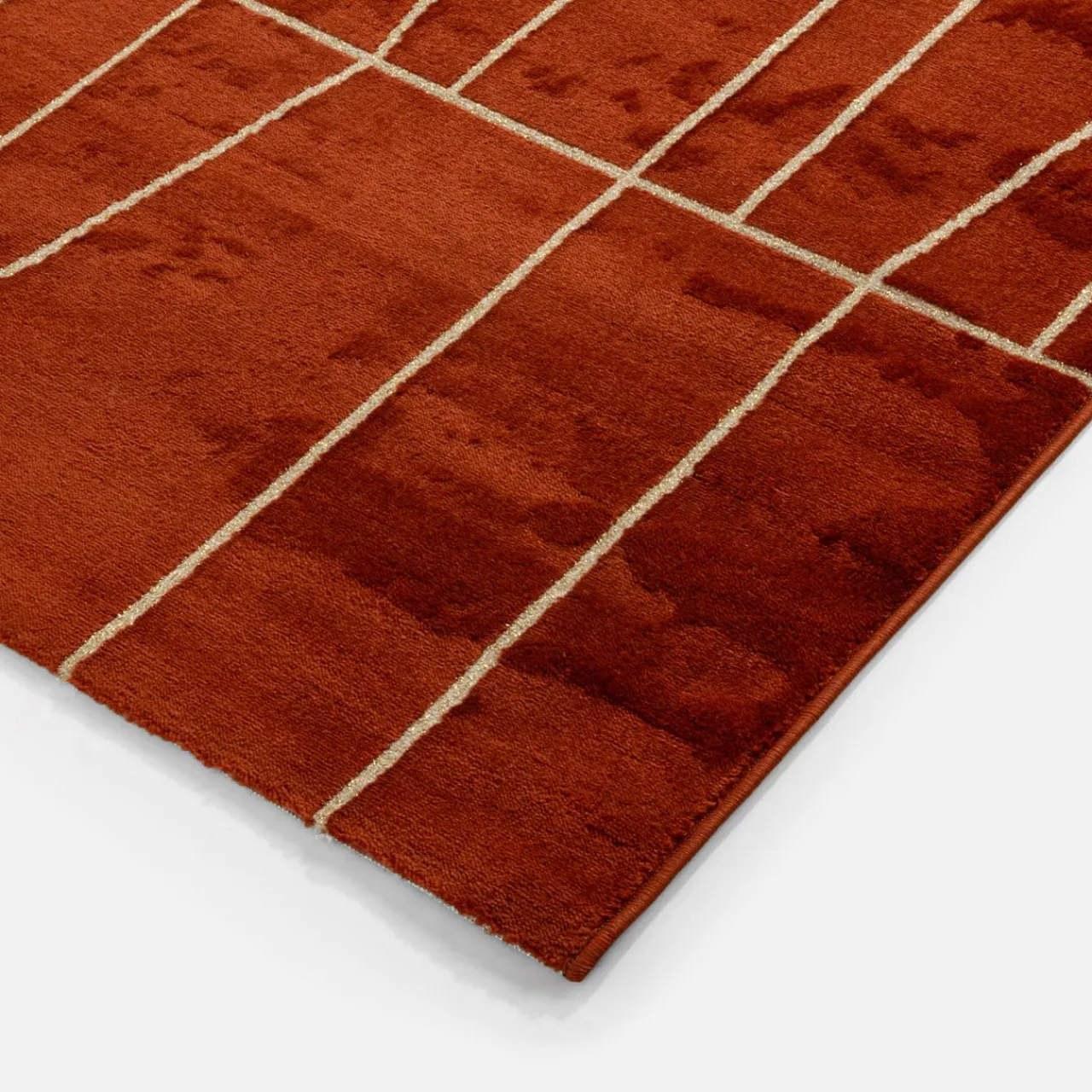 Dywan CANNES w odcieniu miedzianego brązu ze złotym geometrycznym wzorem to propozycja do eleganckich wnętrz. Idealnie sprawdzi się w aranżacjach glamour, modernistycznych, inspirowanych stylem art déco, a nawet retro.