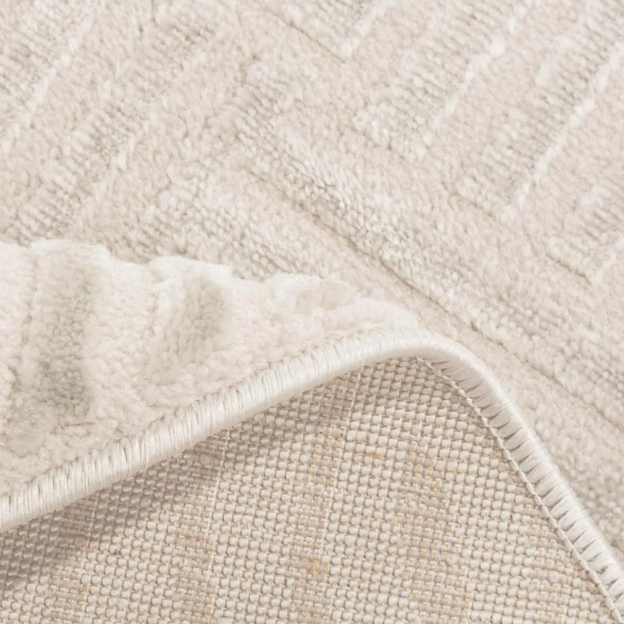 Dywan dzięki połączeniu długiego i krótkiego włosia tworzy efekt 3D mieniący się odcieniami kremu.
