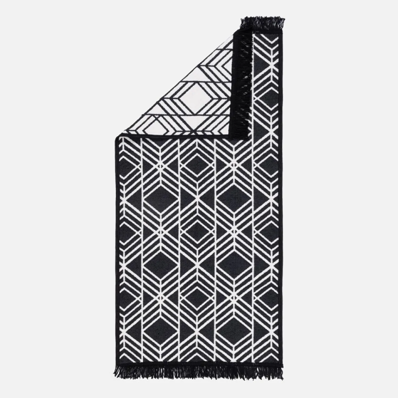 Dywan ALBORG w geometryczny wzór sprawdzi się w nowoczesnych, ale też boho wnętrzach w nieco ciemniejszej stylistyce. Klasyczne połączenie czerni i bieli przyciągnie spojrzenia i urozmaici wystrój.