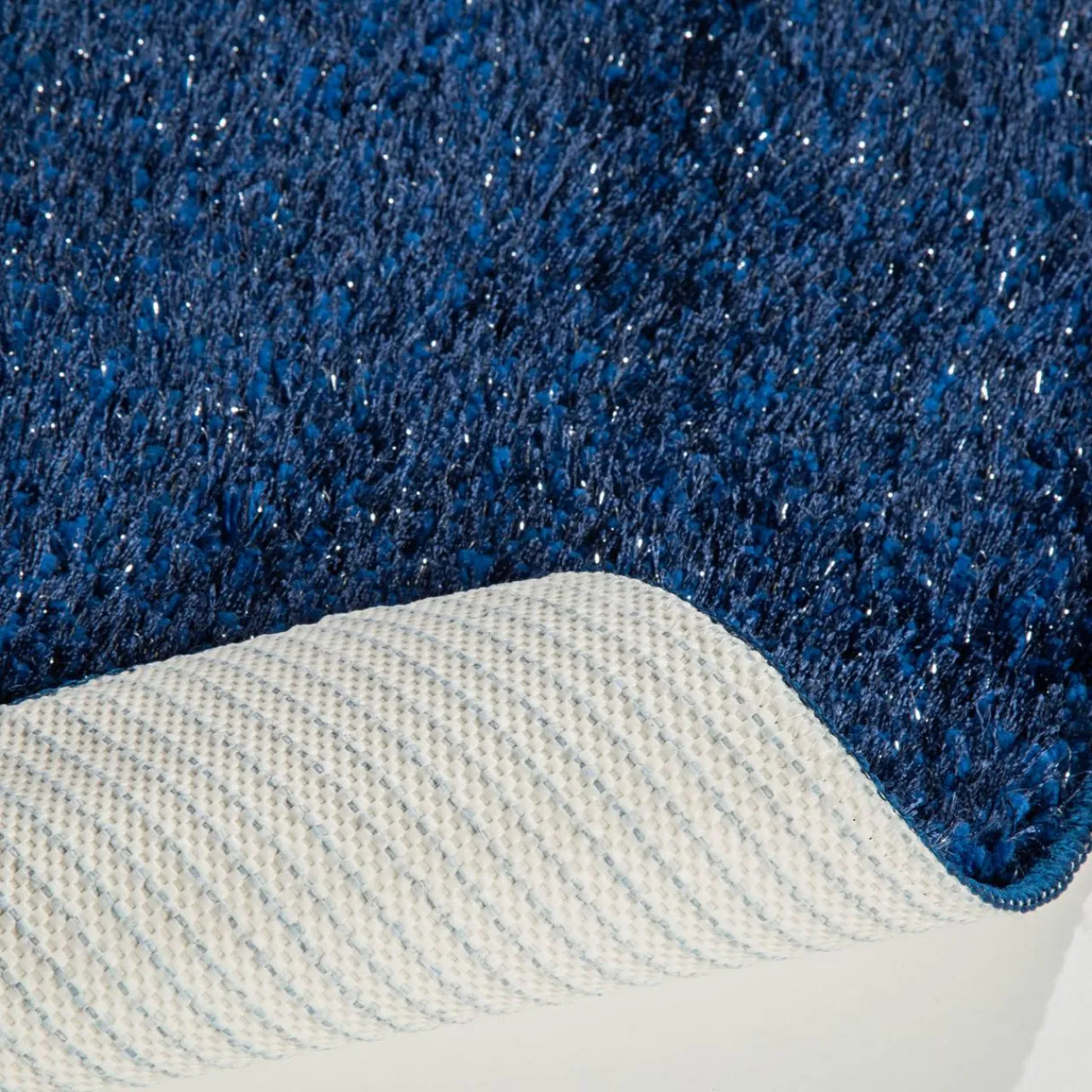 - Granatowy materiał przetykany jest srebrną nitką, dzięki czemu runo dywanika subtelnie połyskuje. Jeśli zależy Ci na dodatku, który wprowadzi do pomieszczenia efekt „wow”, nie zawiedziesz się, wybierając ten dywanik. Będzie pasował do nowoczesnego wnętrza okraszonego nutką glamour. Postaw na białe lub granatowe płytki ścienne i srebrne dodatki, a stworzysz aranżację spójną wizualnie.