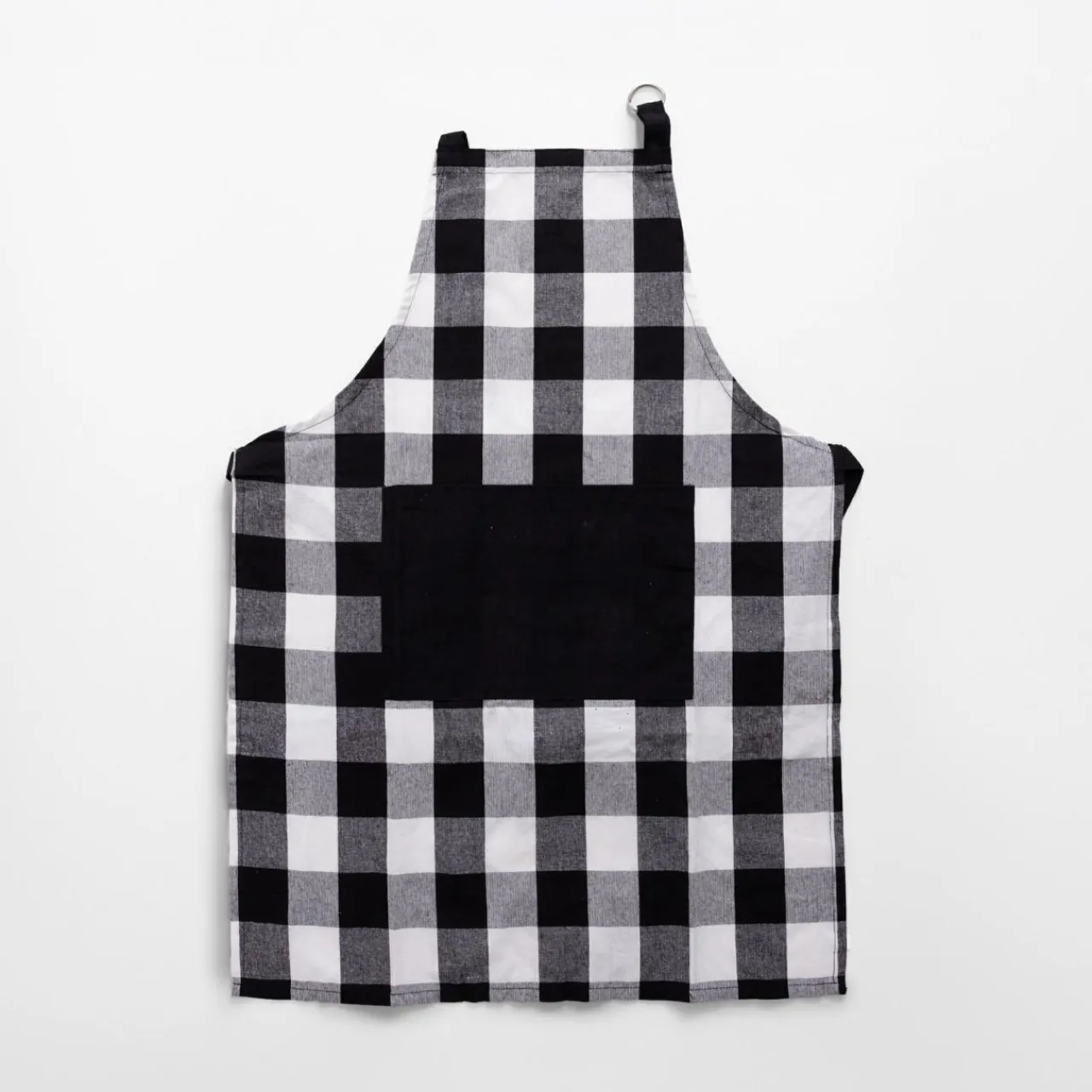 Klasyczny fartuch kuchenny w czarno-białą kratkę to niezbędny dodatek dla każdego miłośnika gotowania.