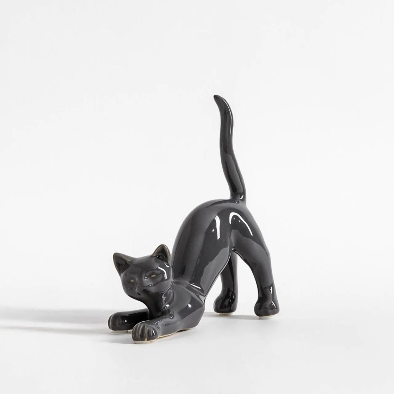 - Szary kot w postawie gotowej do zabawy wprowadzi wesoły akcent do pomieszczenia.