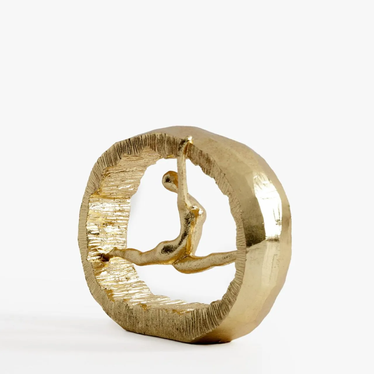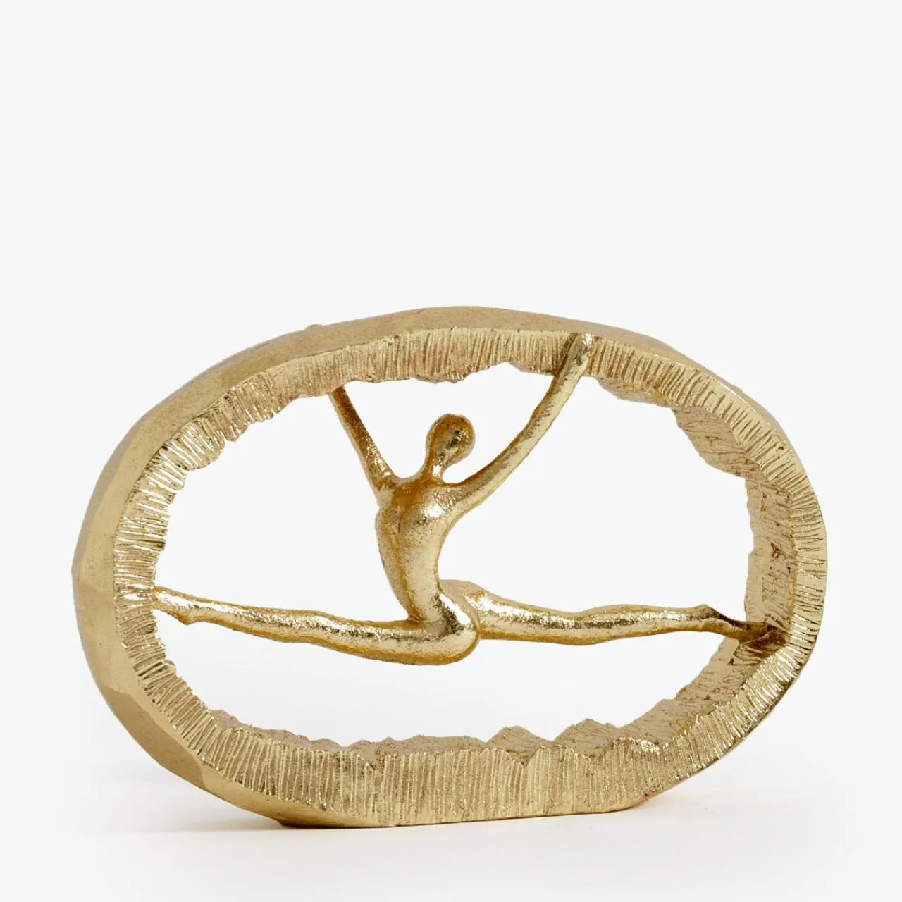 Figurka dekoracyjna gimnastyczki wykończona w złotym połysku emanuje elegancją, idealną do wnętrz w stylu glamour. Wyrzeźbione ciało oraz zaokrąglona rama nadają jej wyjątkowego charakteru. Wygięta postura tworzy wokół siebie aurę siły i harmonii z duszą.